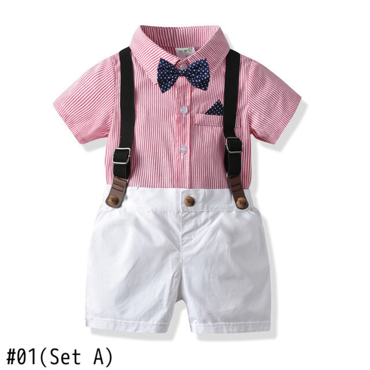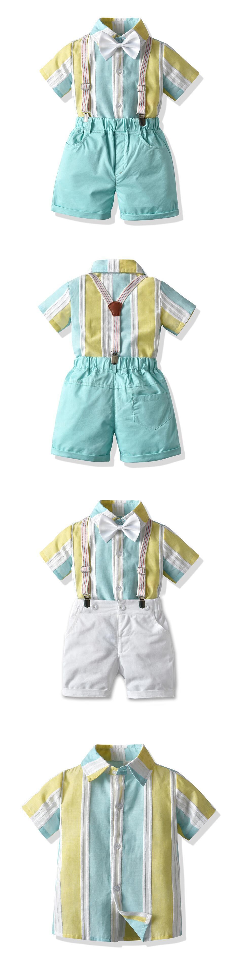 新作 キッズベビー男の子マルスーツ半袖シャツ + サスペンダーパンツ服衣装紳士セット 2 個 1-7 歳