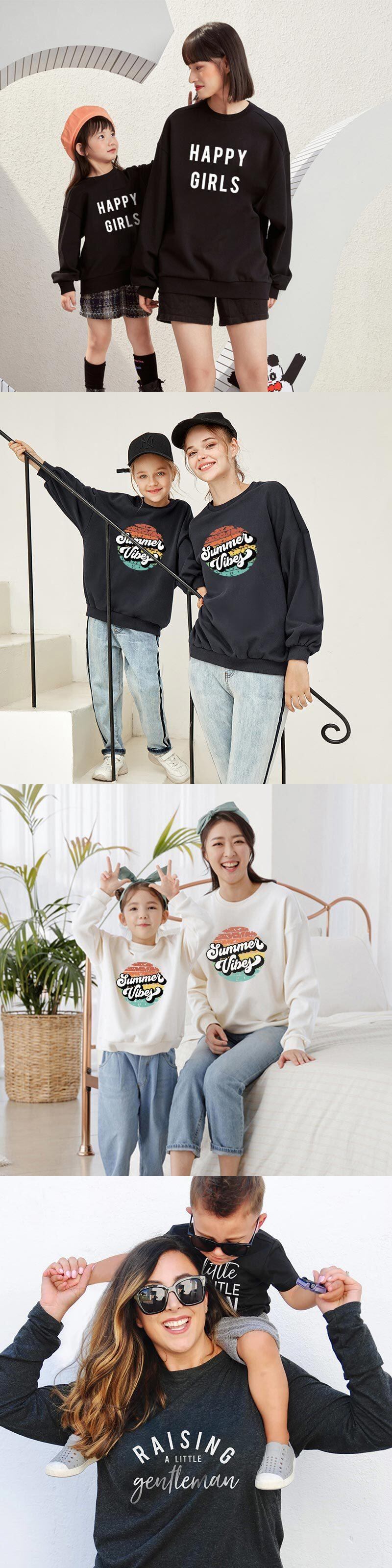 新作 春秋の子供服ガールズボーイズスウェットママと娘のマッチング衣装家族長袖スウェットシャツ