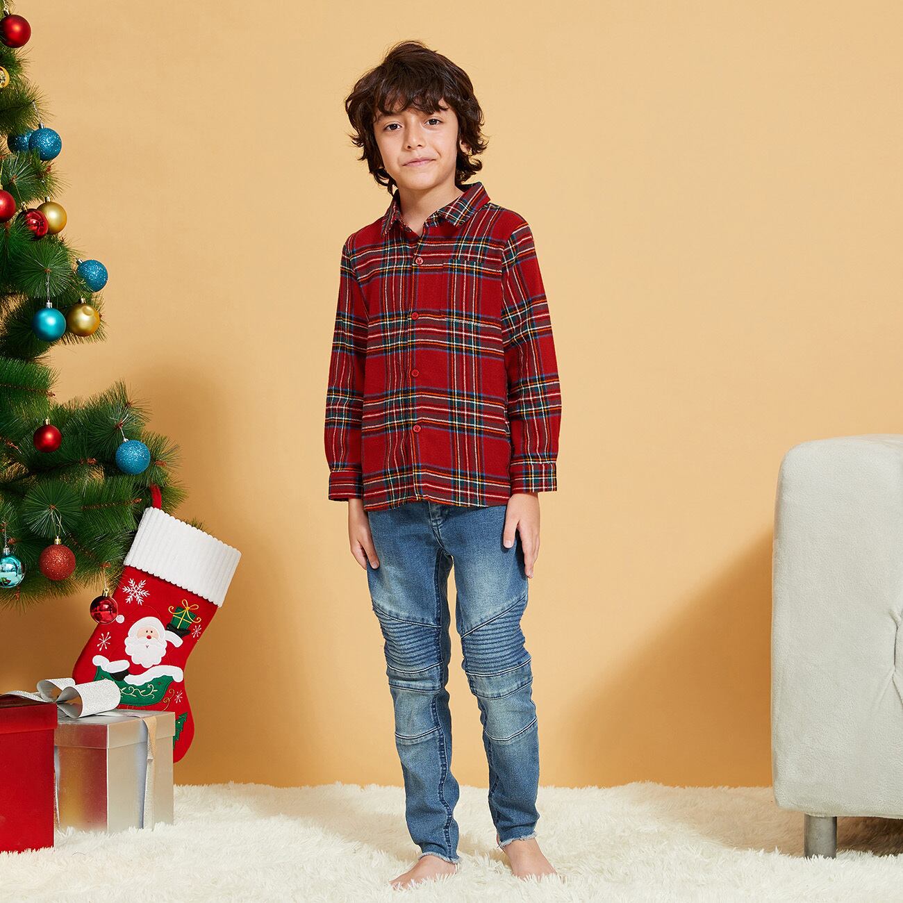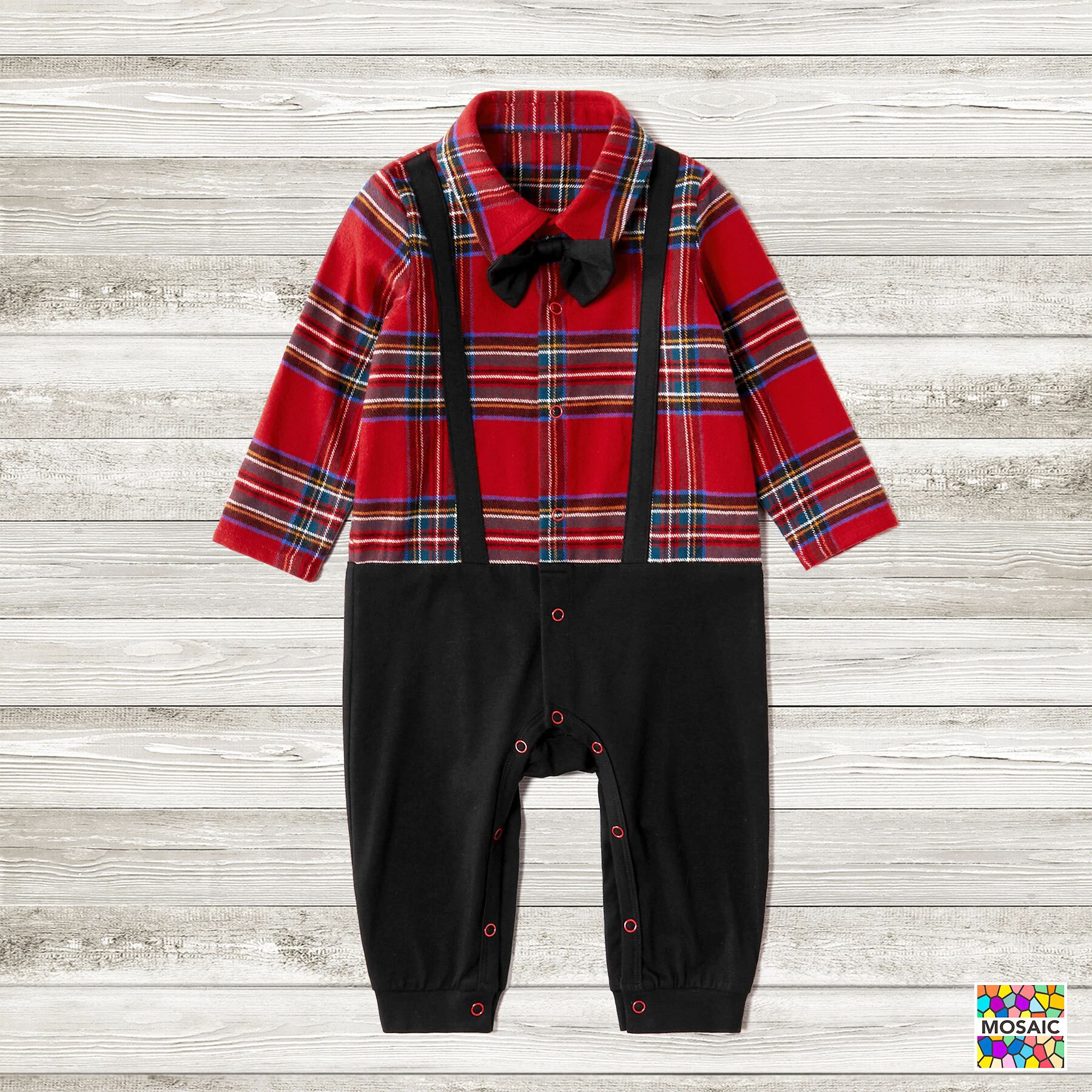新作 PatPat Hot s Mosaic Farty Sets ファミリーマッチング (チェック柄ドレス-チェック柄ボタンフロントシャツ-ロンパース) セット