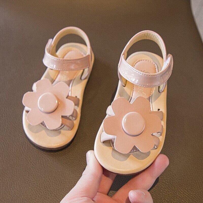新作 PatPat 夏の幼児の女の子のパテントレザーの花の装飾ピンクサンダルフラワーソフトボトムノンスリップ子供のベビービーチシューズ