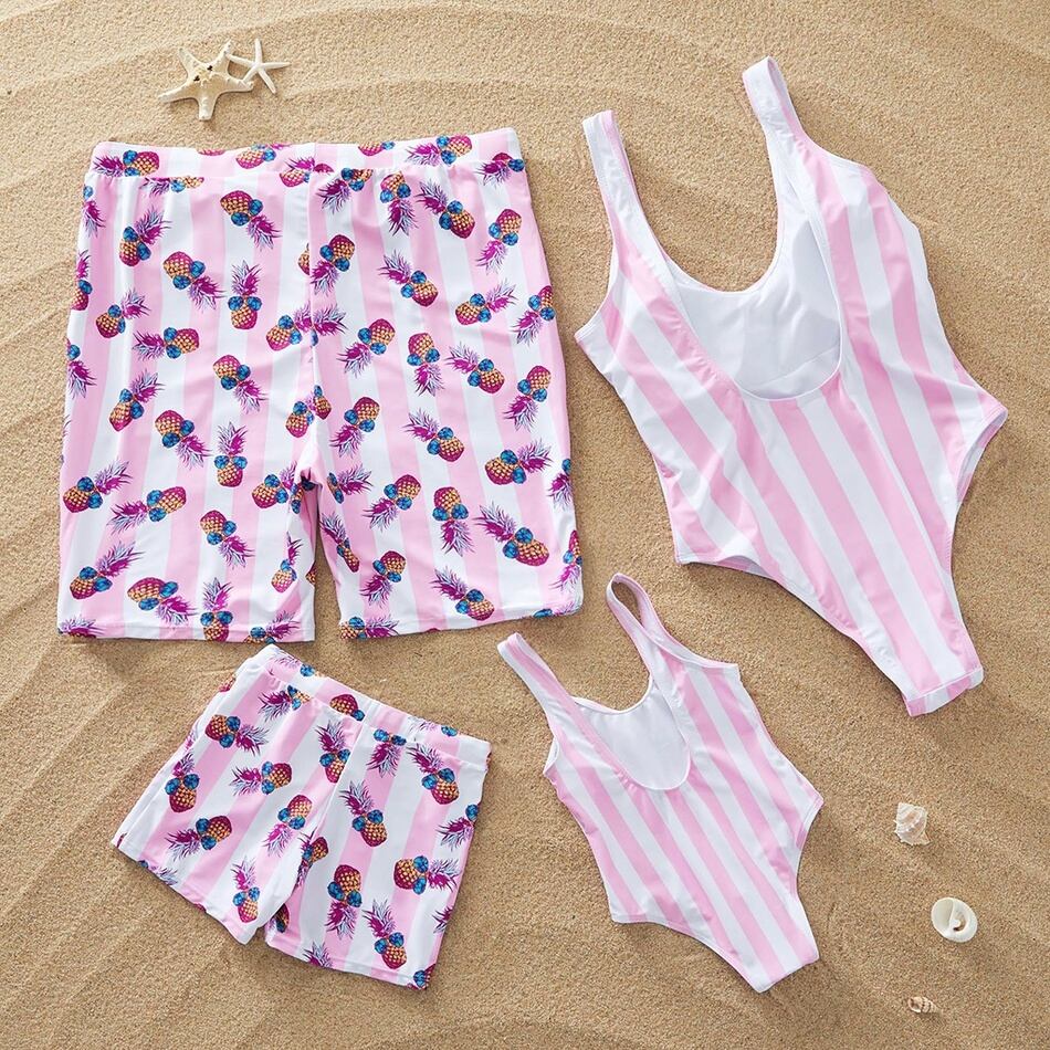 新作 PatPat 夏 ファミリー お揃い クール ストライプ パイナップル 水着 ファミリールック フルーツ総柄 ピンク ワンピース