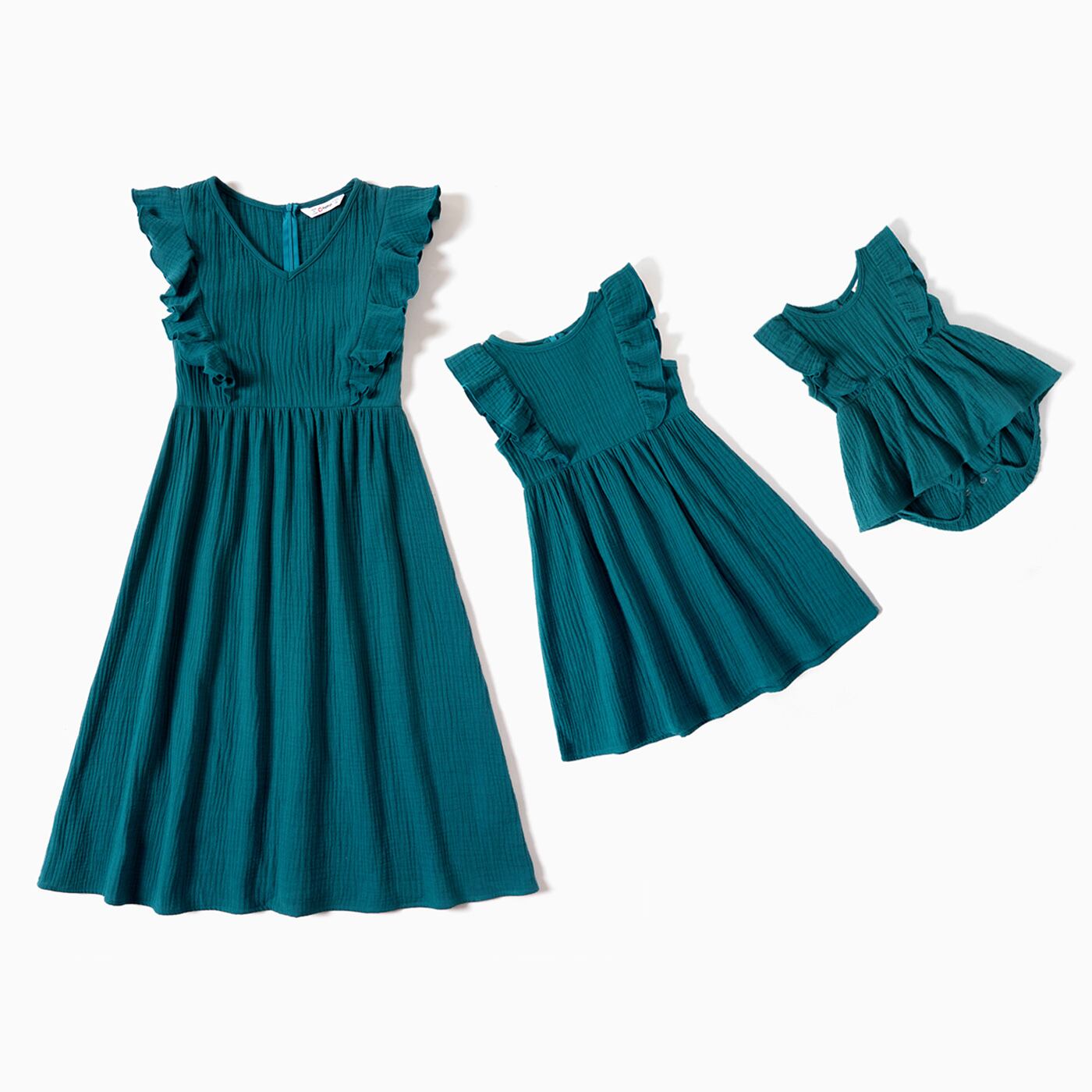 新作 PatPat 家族お揃い 夏 綿100% フリル飾り 無地 タンクドレス ママと私