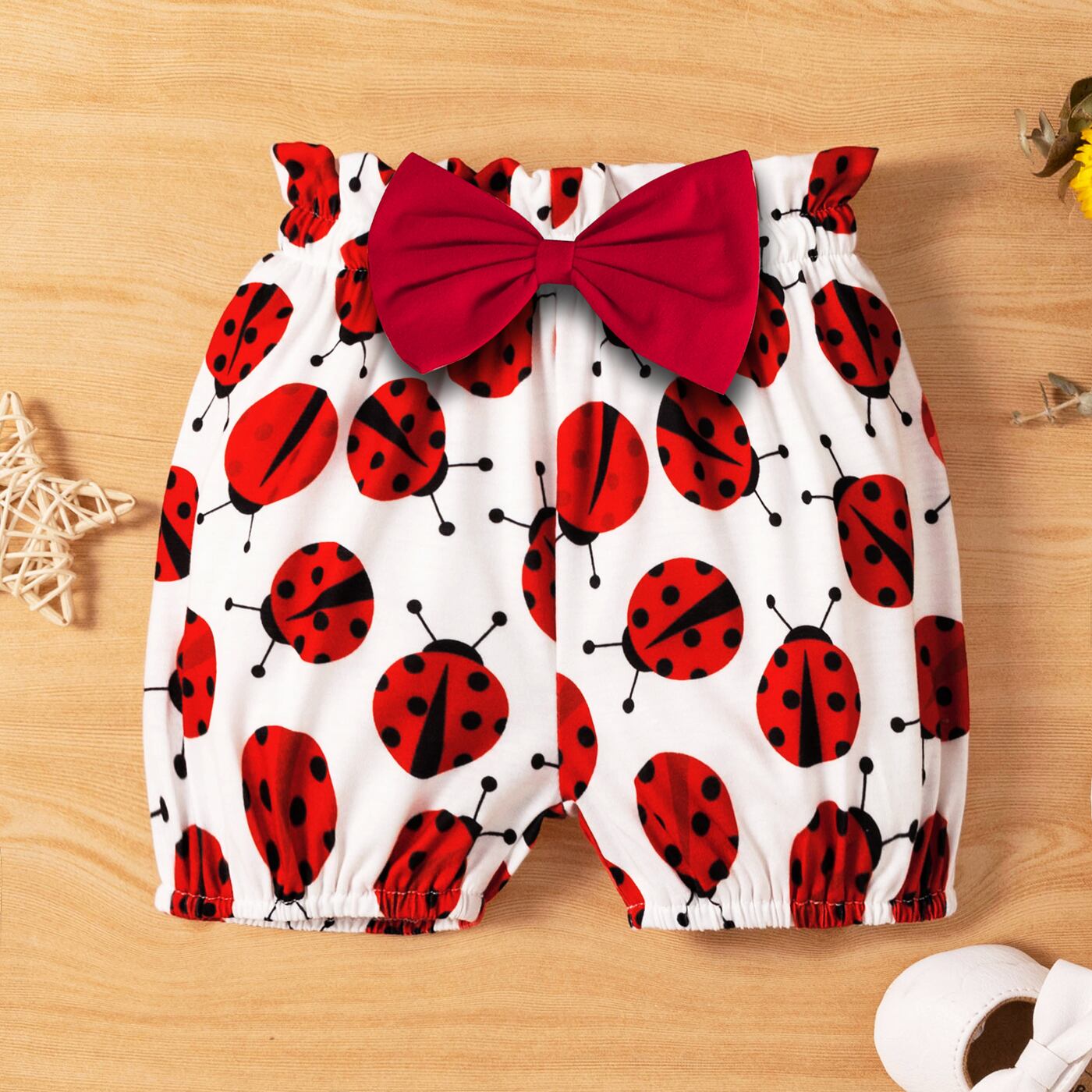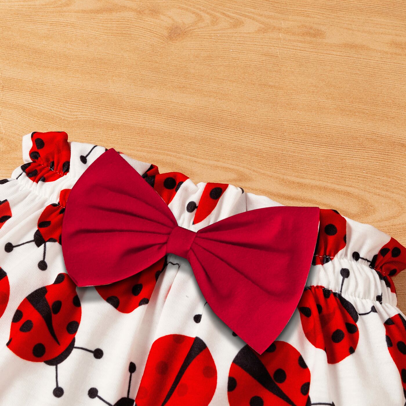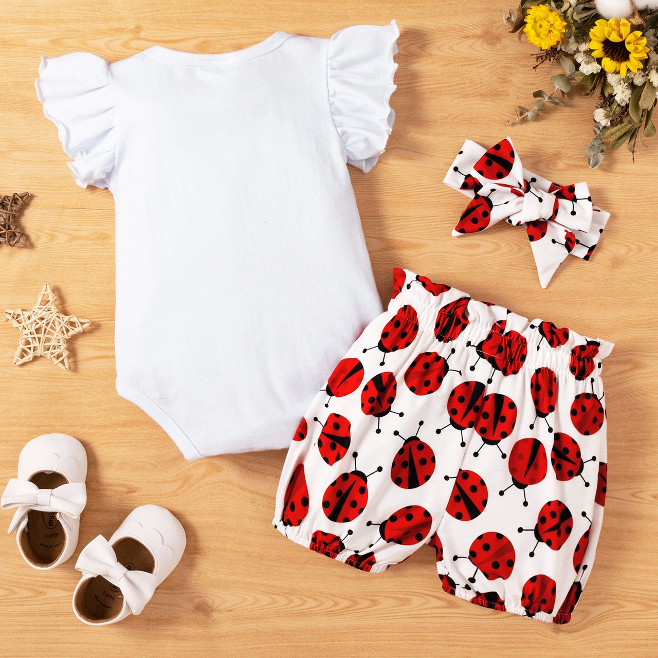 新作 PatPat 3ピース ベビーガール レタープリント フリルスリーブロンパース てんとう虫プリントショーツとヘッドバンドセット
