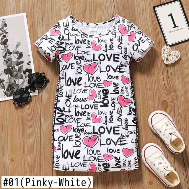 新作 PatPat トドラーガール レターハートプリント 半袖ドレス