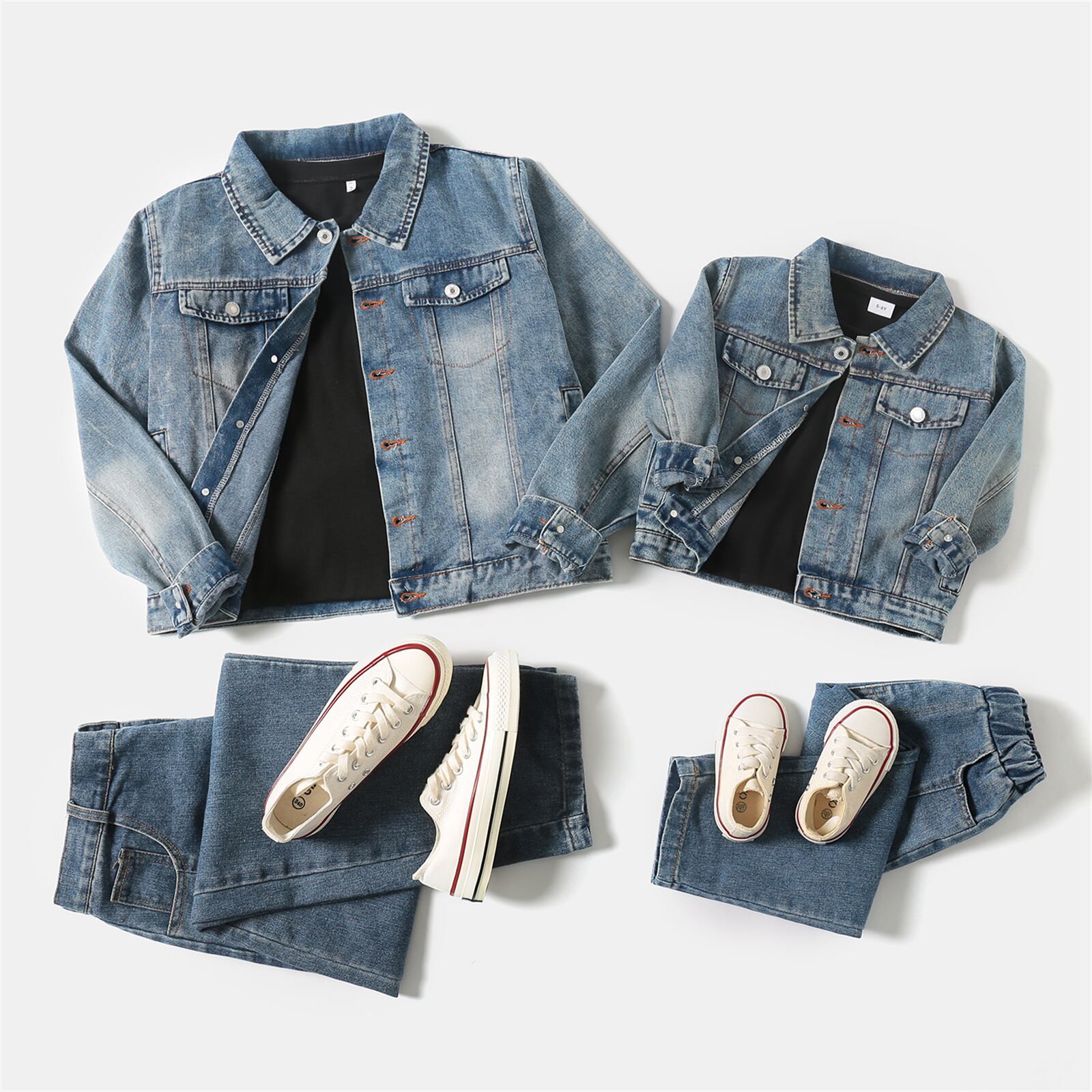 新作 PatPat ライトブルー ラペル ボタンダウン ロングスリーブ ディストレスト デニム ジャケット ママと私