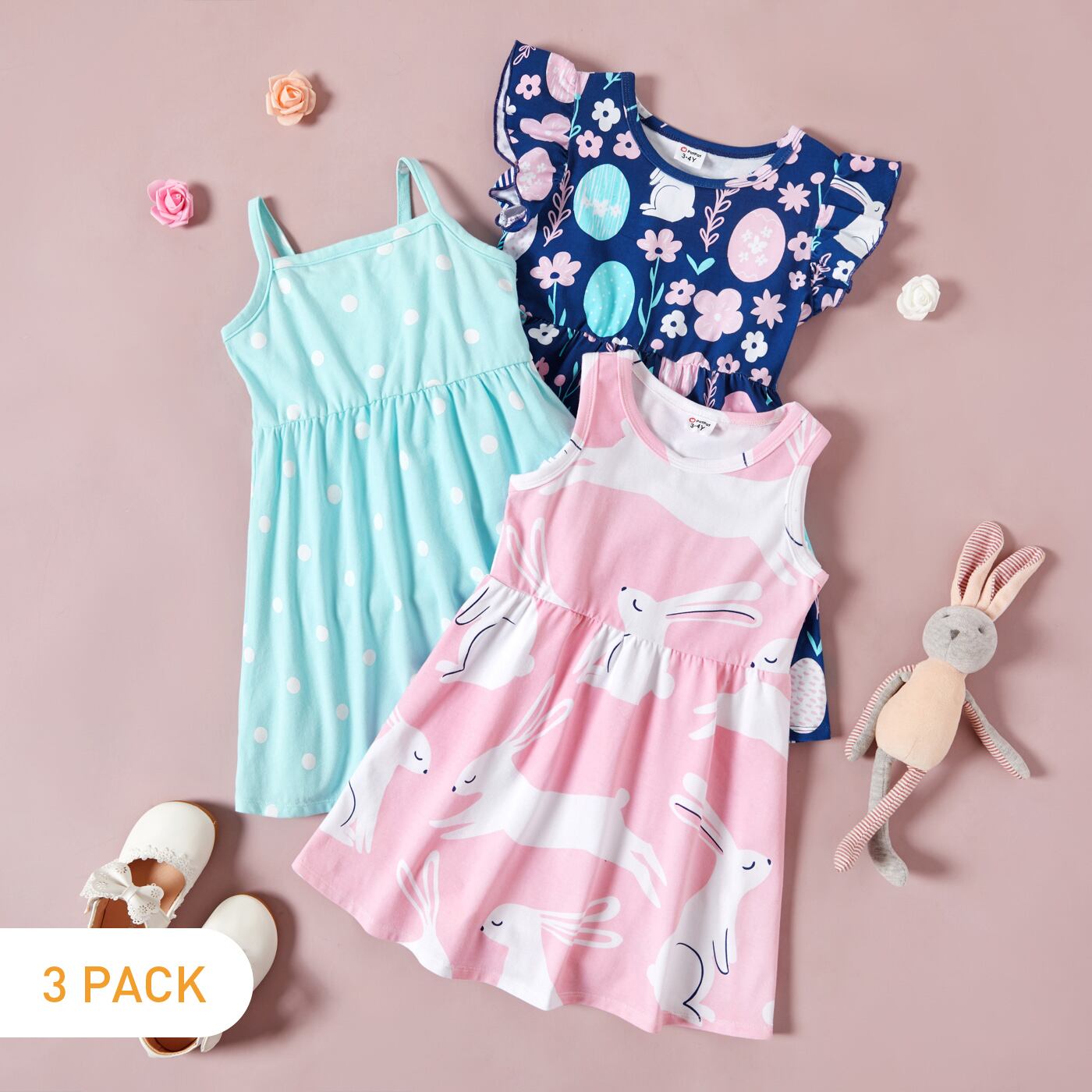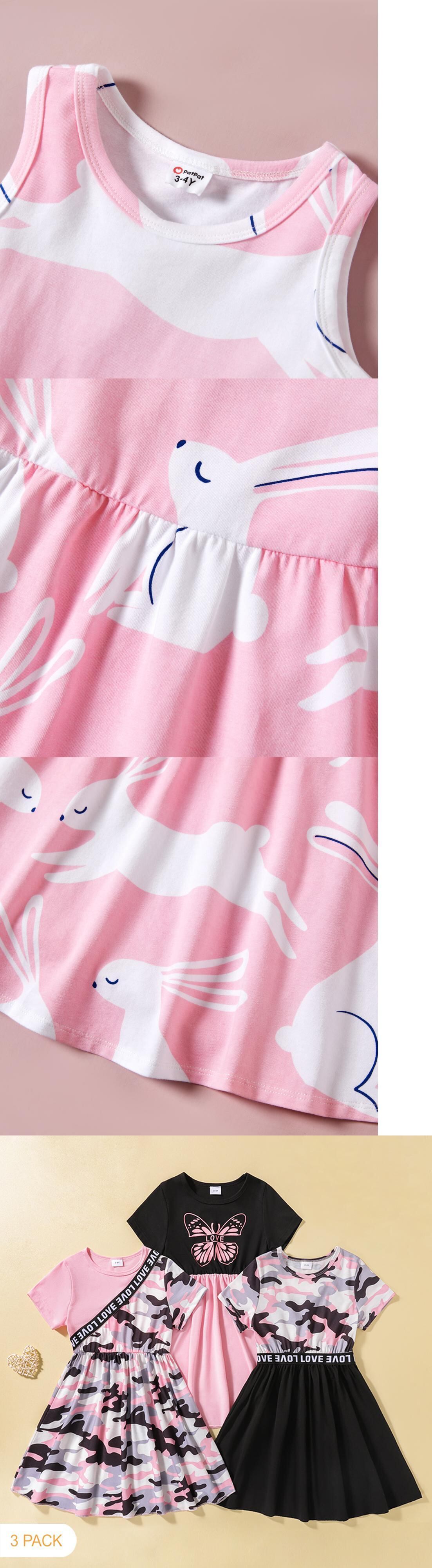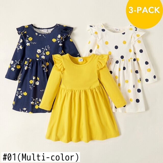 新作 PatPat 春と秋の 3 枚組ドレス幼児女の子ドットと無地半袖と長袖ドレス セットかわいい子供の