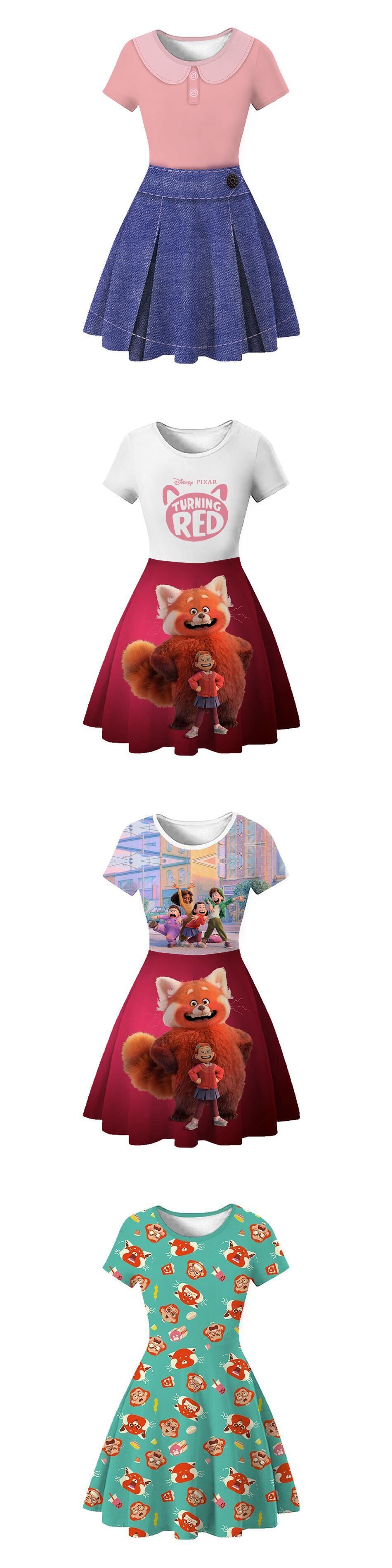 新作 キッズ ガールドレス ターニングレッド コスプレシャツ 2点セット メイリン メイ ベア ぬいぐるみ 2-14歳
