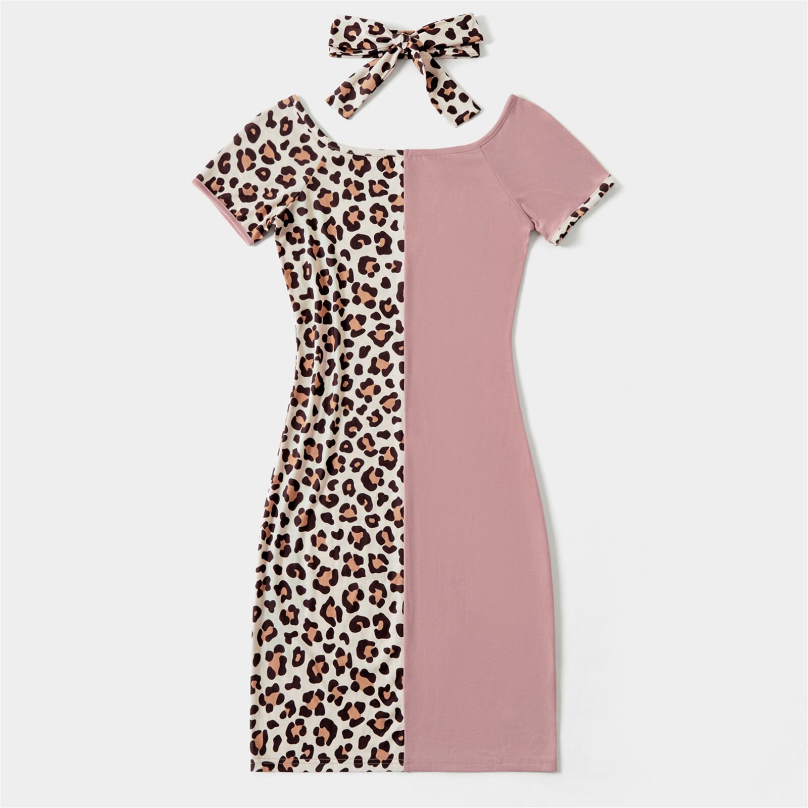 新作 PatPat Leopard Splice 半袖 マッチング ピンク ミディドレス