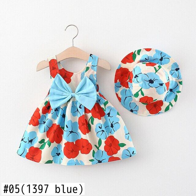 新作 夏の女の赤ちゃん服セット新生児ビーチドレスかわいい弓チェック柄ノースリーブコットン新生児パーティードレス + Sunhat 0-24M