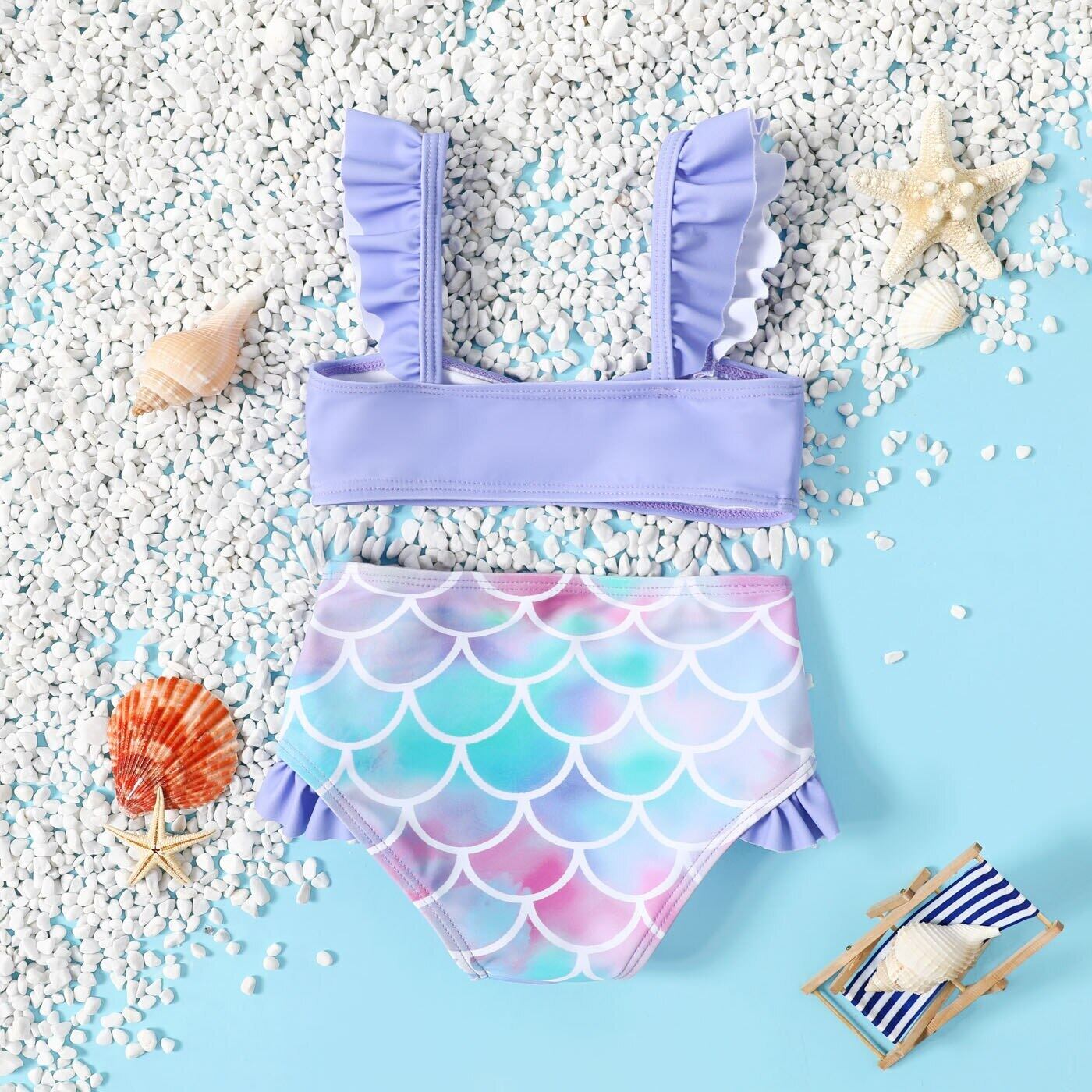 新作 PatPat 2ピース ベビーガール パープル フリルトリム マーメイド ビキニセット 水着