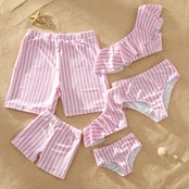 新作 PatPat 2021年夏 ワンショルダー フラウンス ストライプ プリント お揃い水着 ファミリールック 子供用