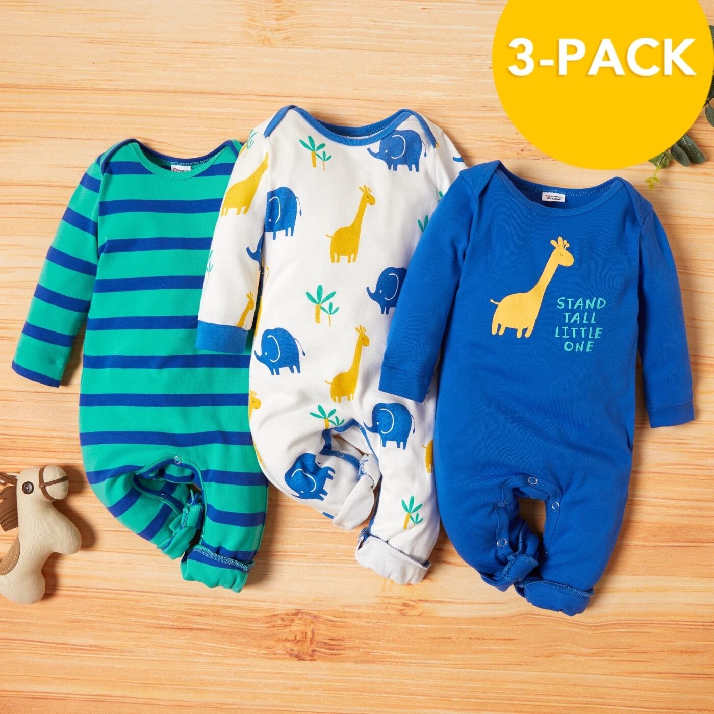 新作 PatPat 秋と冬の 3 パック ベビー キリン ジャンプスーツ セット赤ちゃん男の子と女の子のワンピース