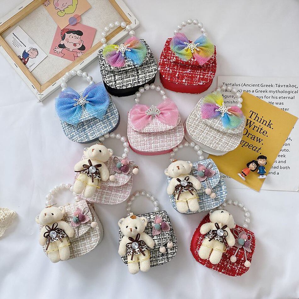 新作 パールハンドバッグキッズミニクラッチバッグかわいいクマ財布クロスボディバッグ女の赤ちゃんエルザポーチキッドマネーバッグ財布