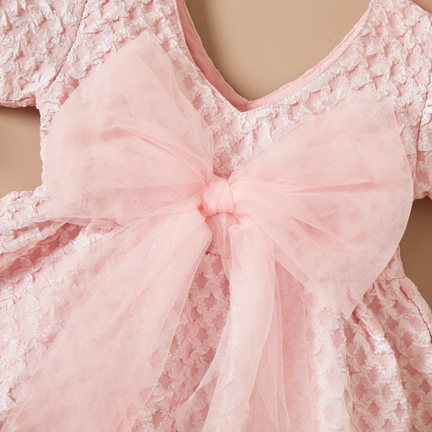 新作 PatPat 無地 リボン飾り 半袖 ピンク ベビードレス
