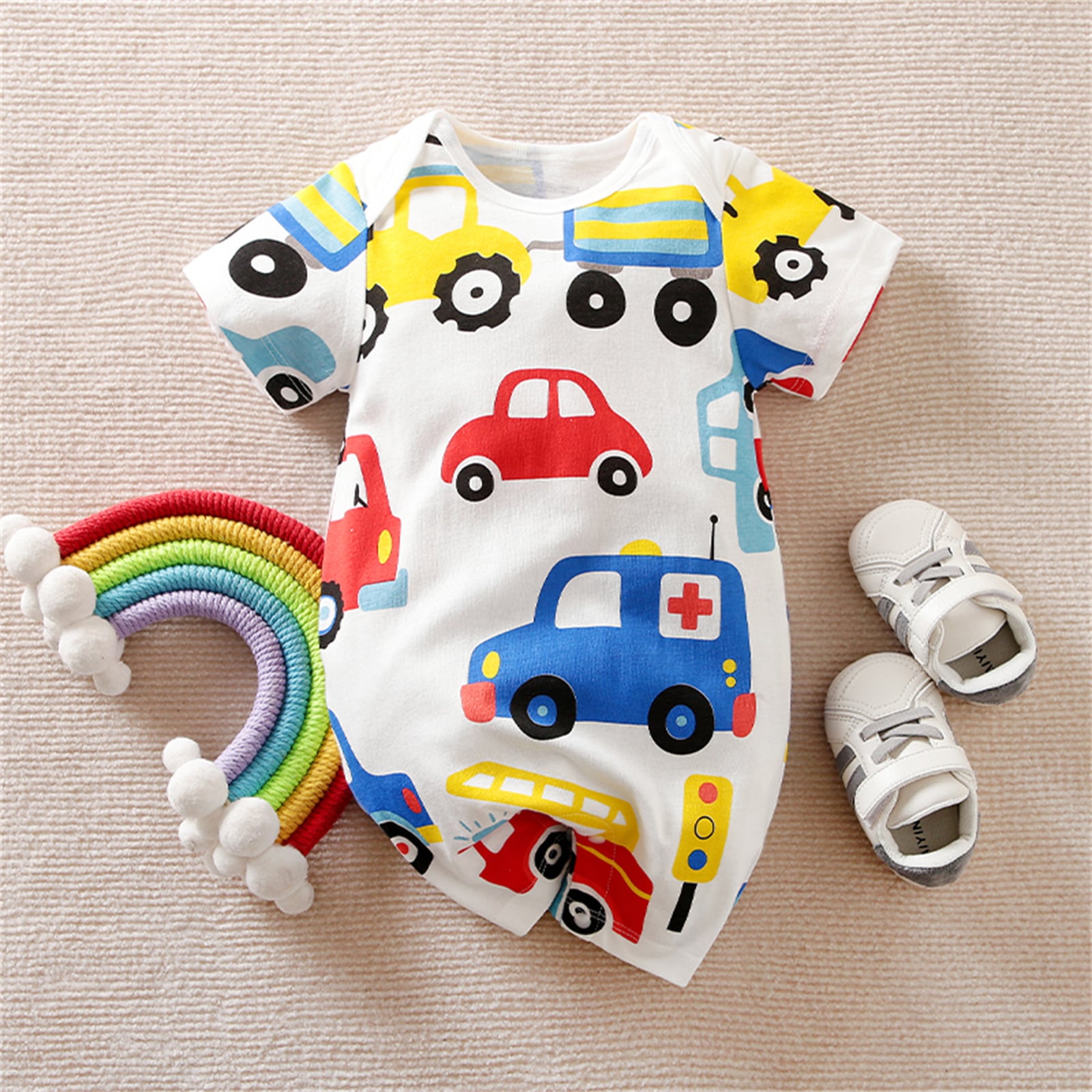 新作 PatPat 100% コットン ベビー 男の子 オールオーバー カートゥーン カープリント 半袖ロンパース