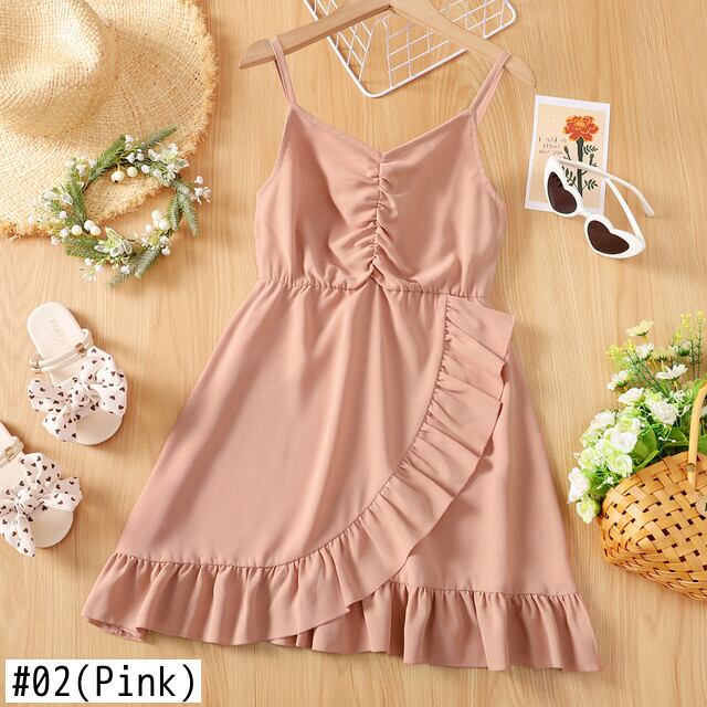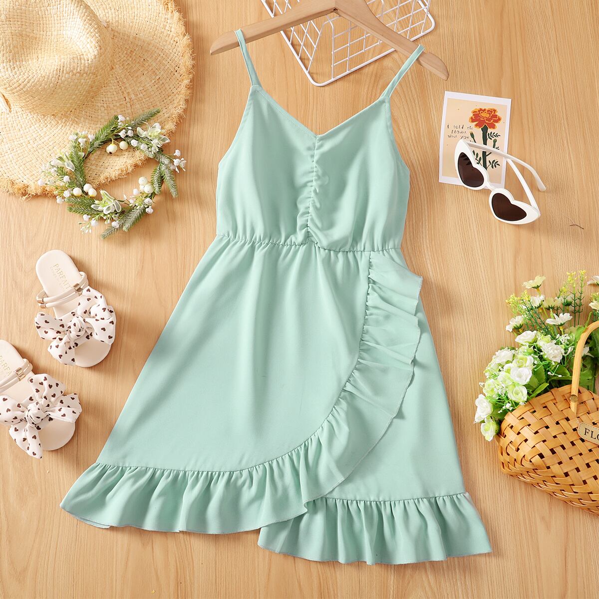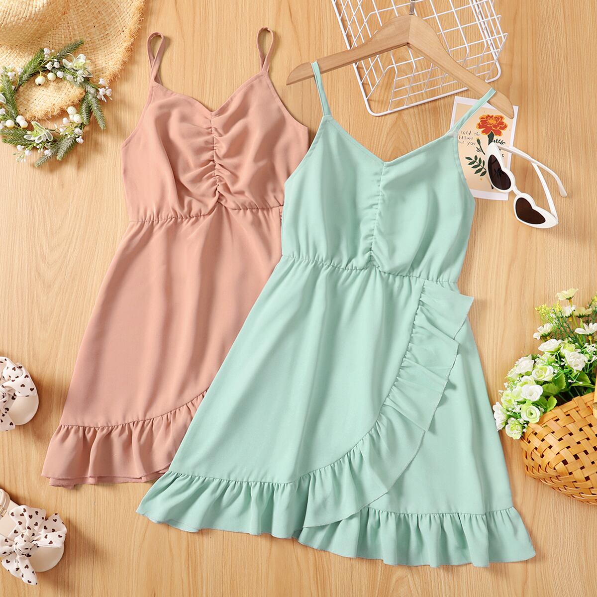 新作 PatPat キッド ガール 無地 フリル ラップ キャミ ドレス