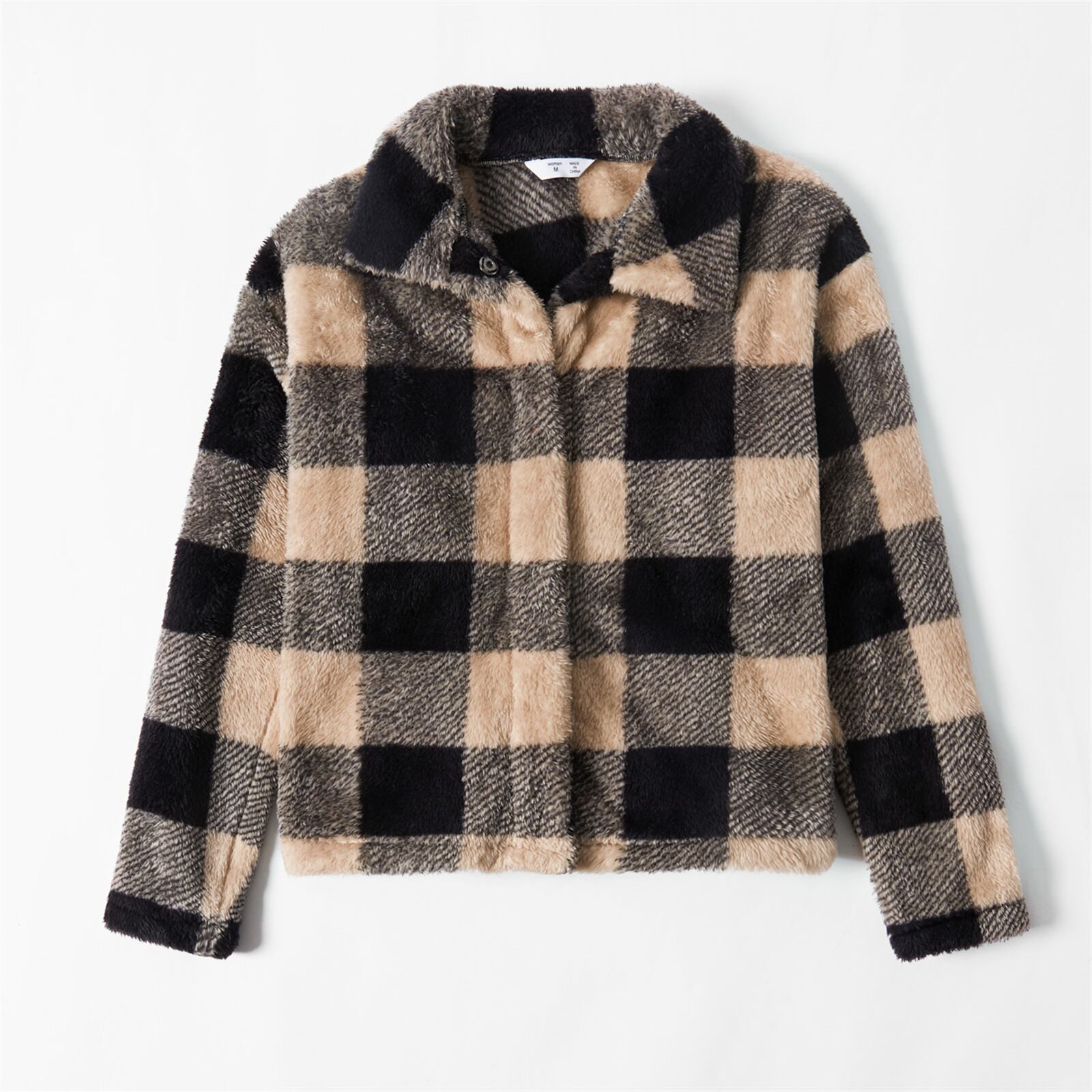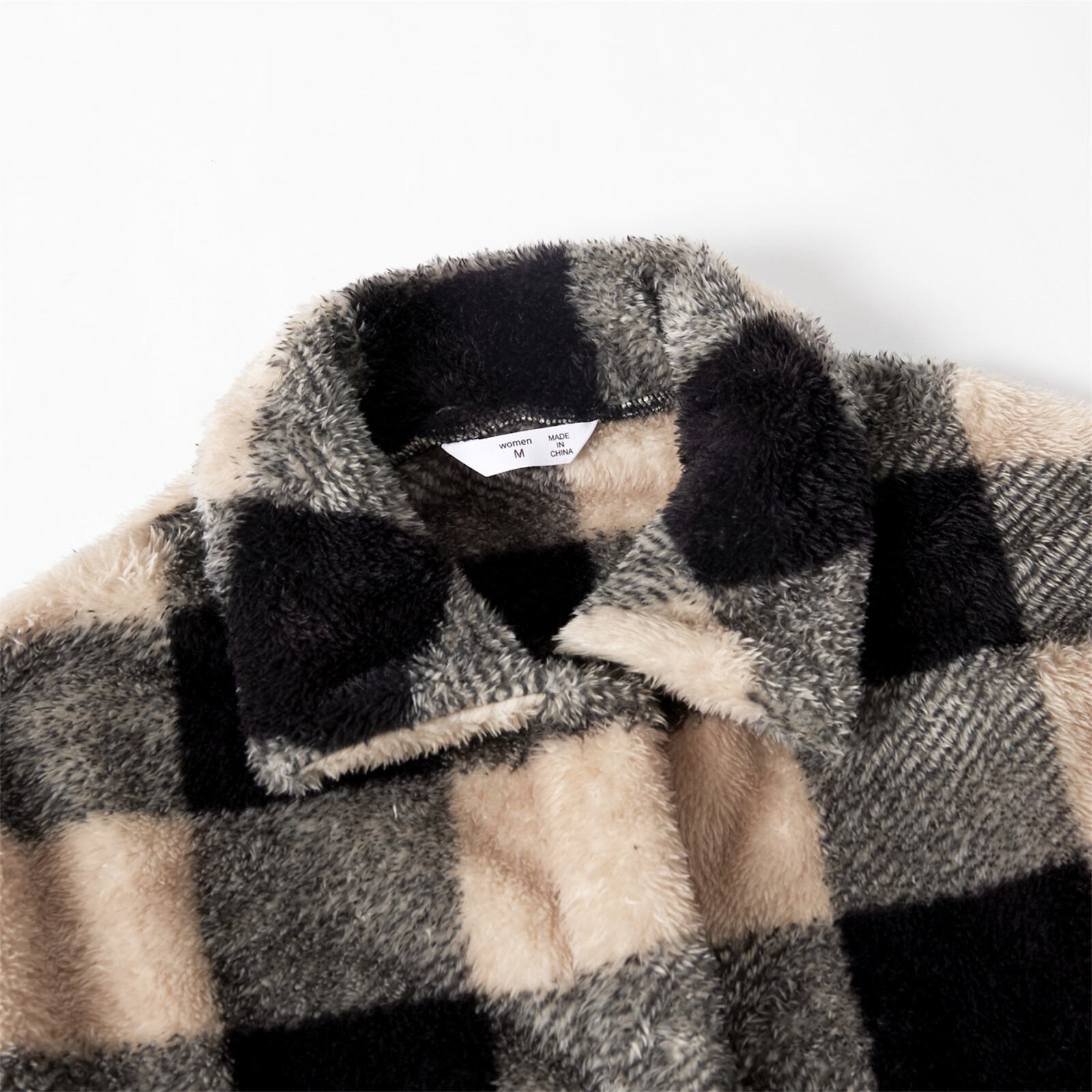 新作 PatPat 格子縞のラペル長袖厚手のフリース コート アウター ママと私