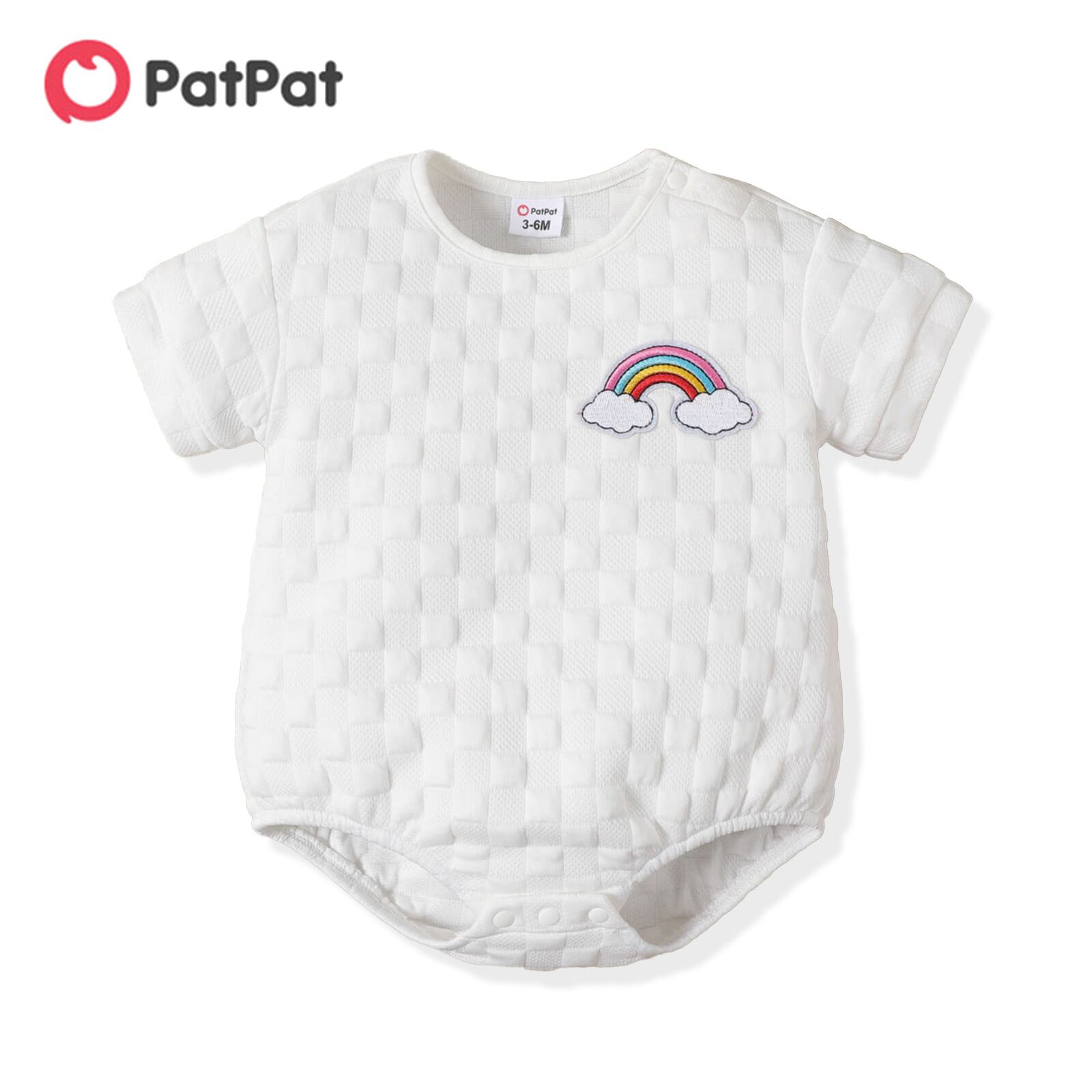 新作 PatPat ベビー 男の子/女の子 レインボー ホワイト テクスチャード 半袖 ロンパース