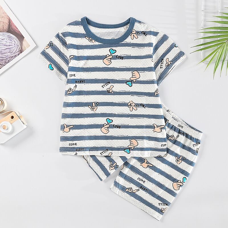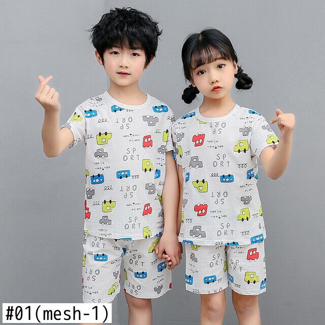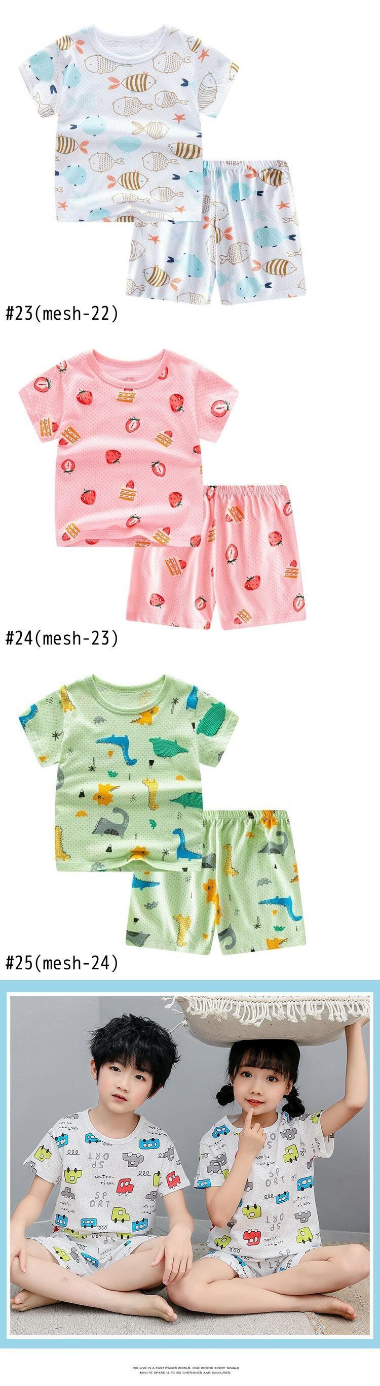 新作 夏の女の子パジャマ漫画女の子パジャマ子供服メッシュ女の赤ちゃん服パジャマ半袖ホームウェアパジャマナイトセット
