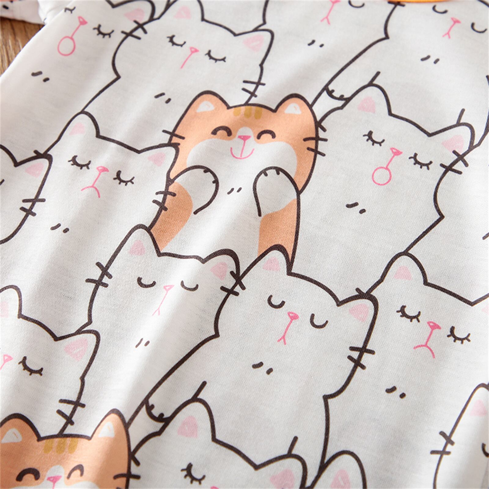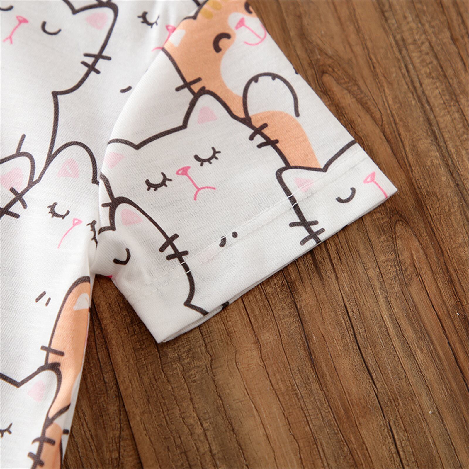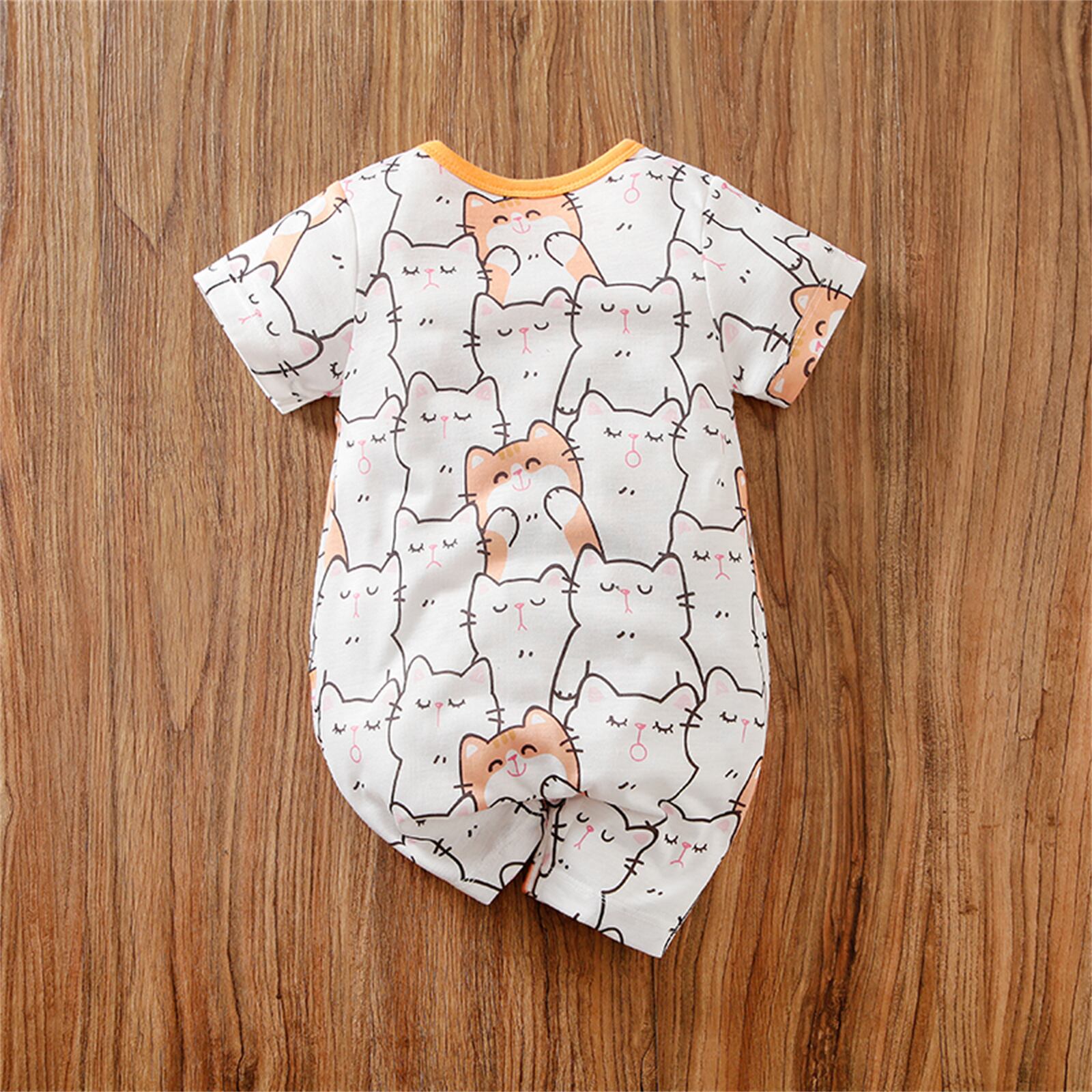 新作 PatPat 女の赤ちゃん全面漫画猫プリント ホワイト半袖ロンパース