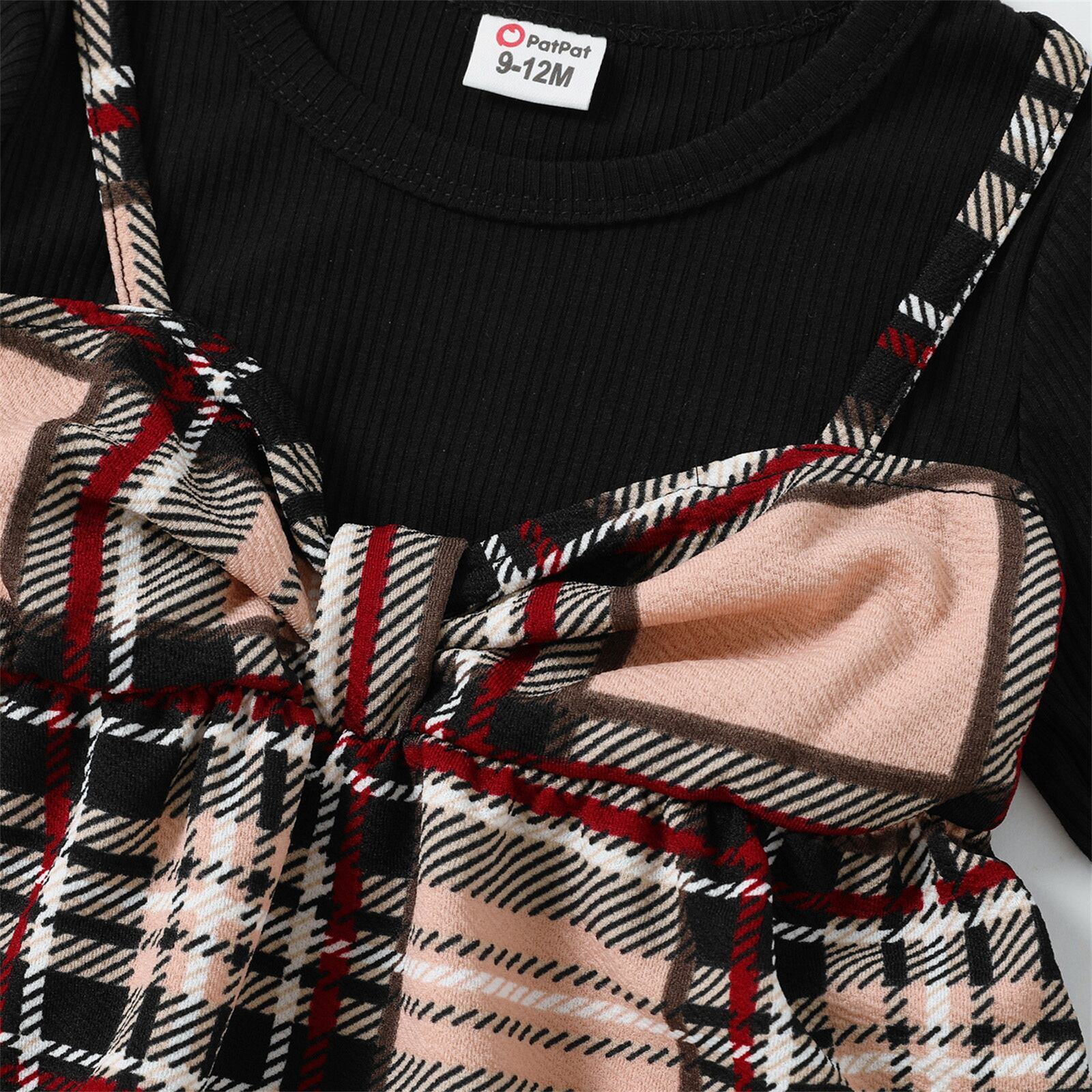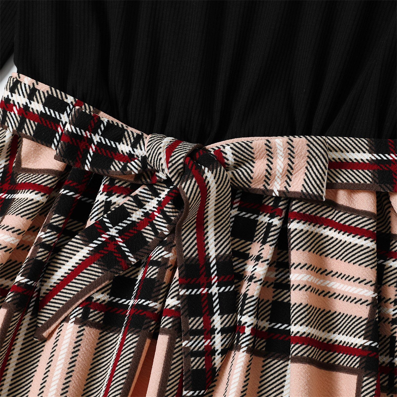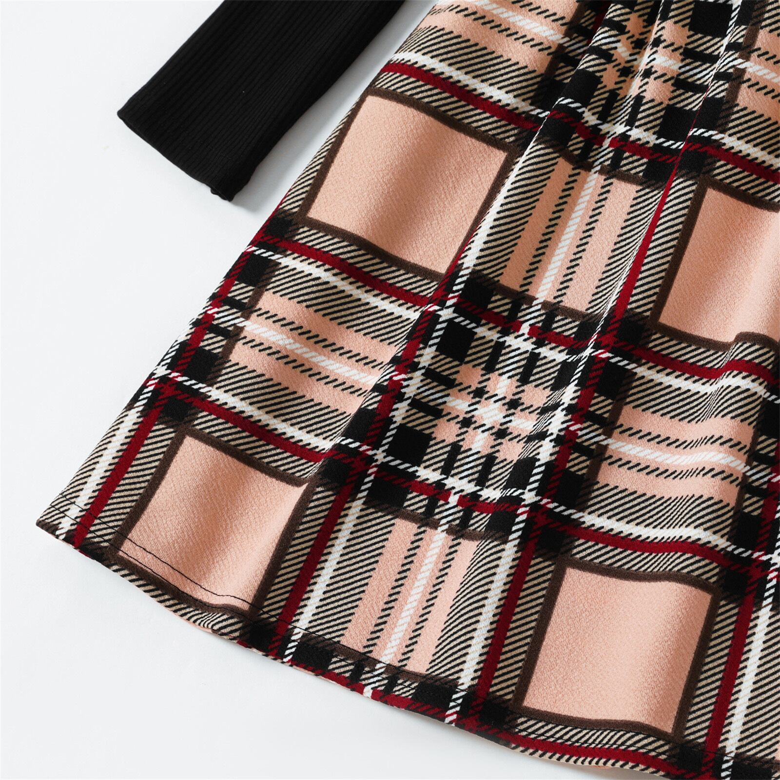 新作 PatPat ファミリー マッチング ブラック 長袖 スプライシング チェック柄ドレスとポロシャツ セット