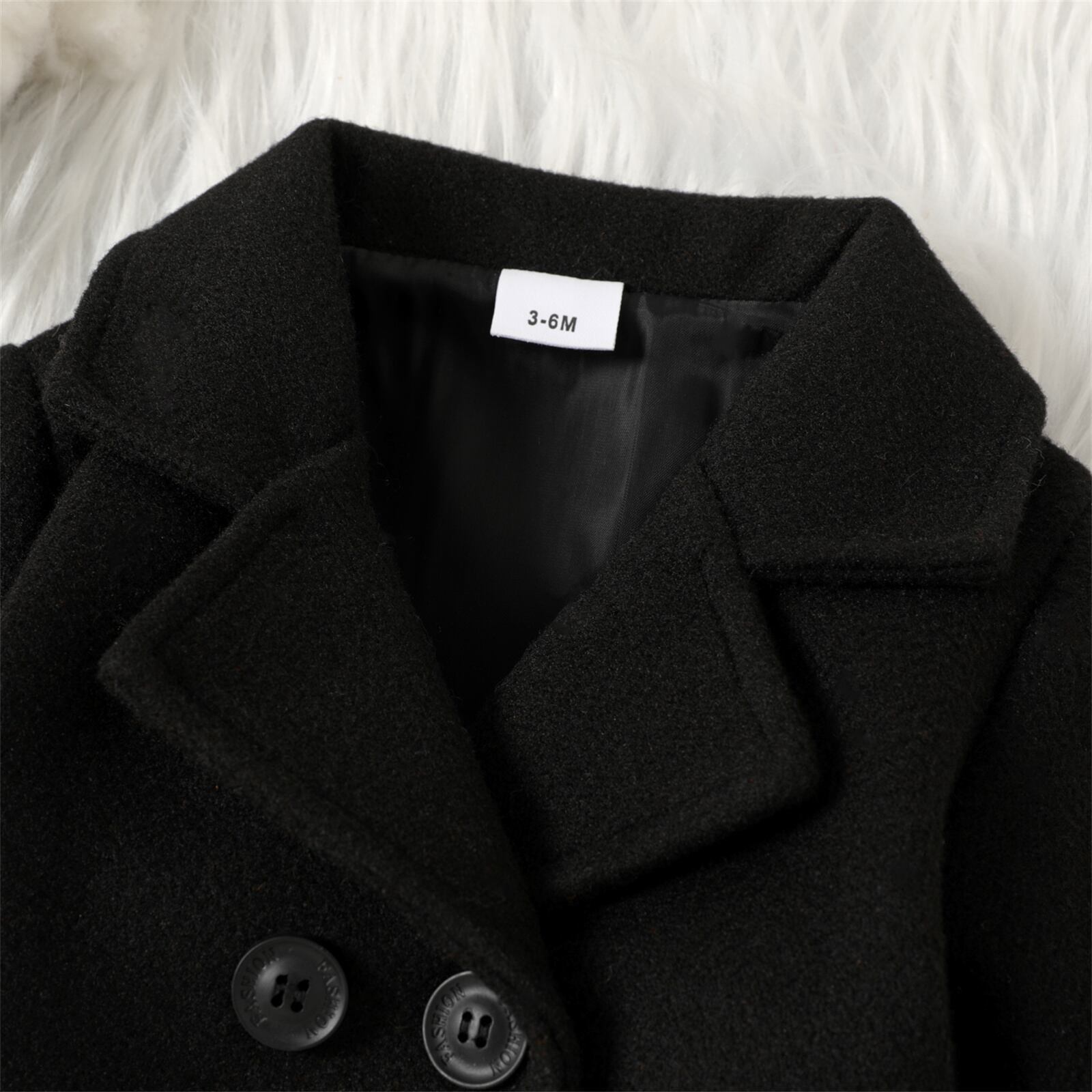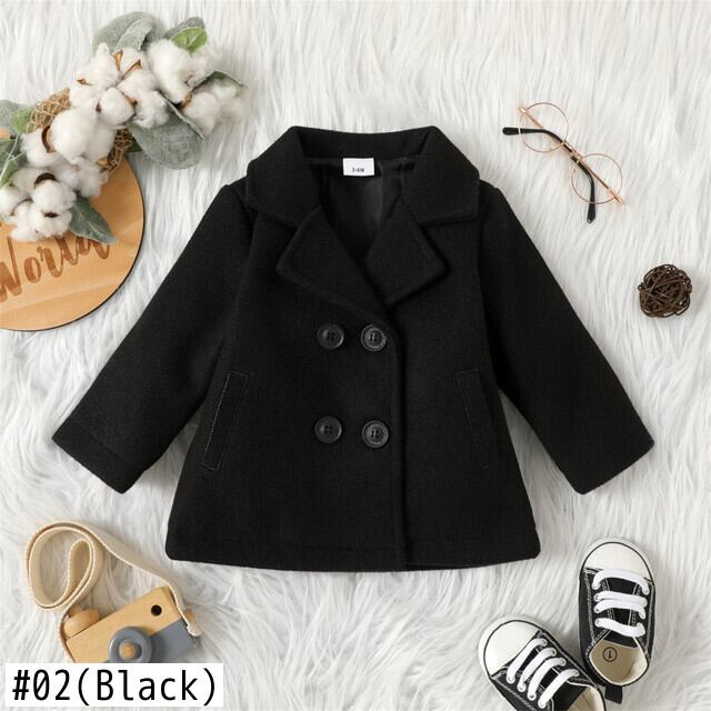 新作 PatPat ベビー 男の子/女の子 無地ラペル ダブルブレスト 長袖 ウール混コート