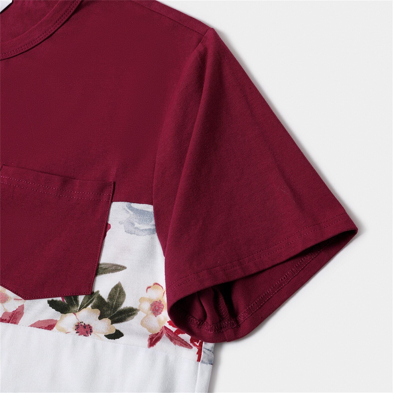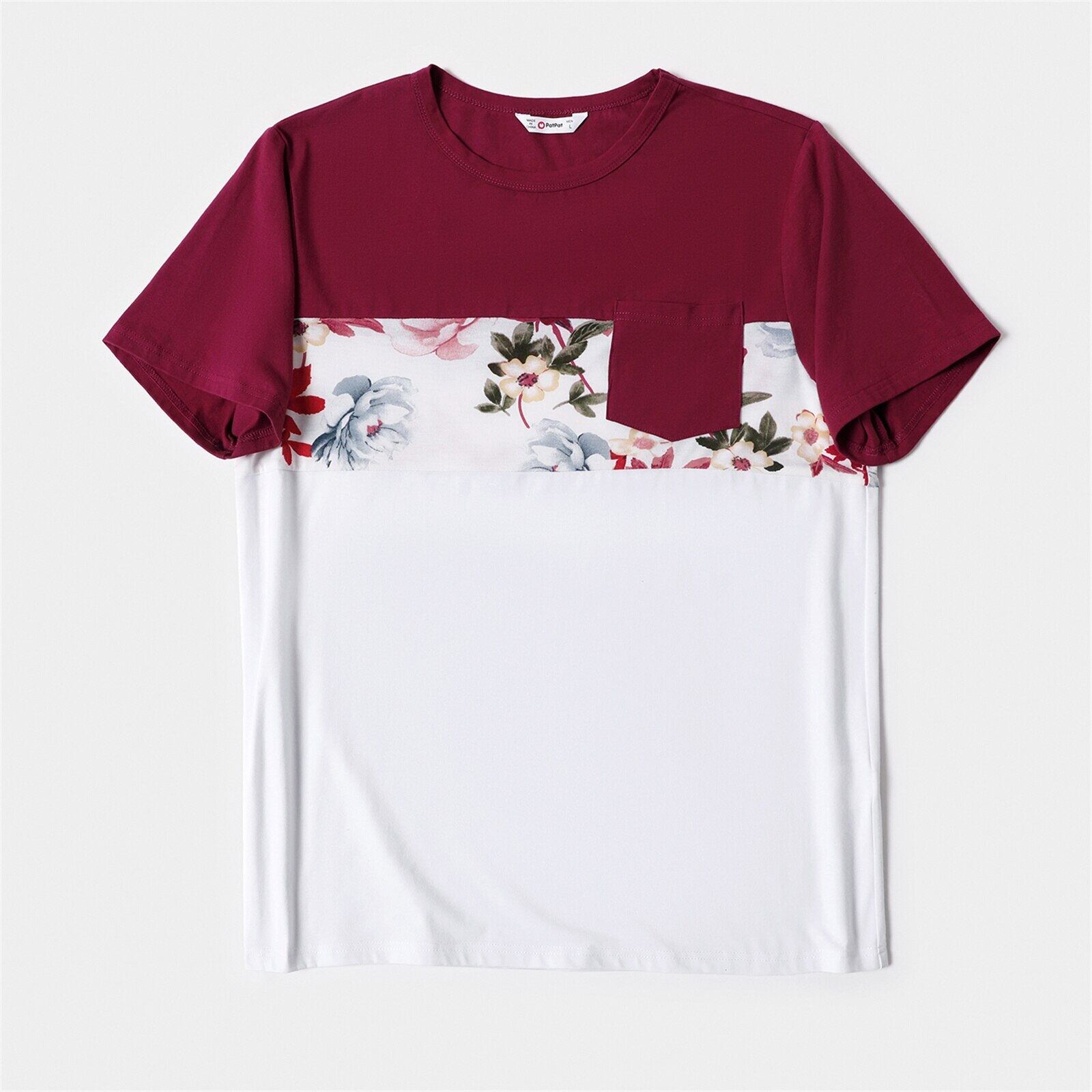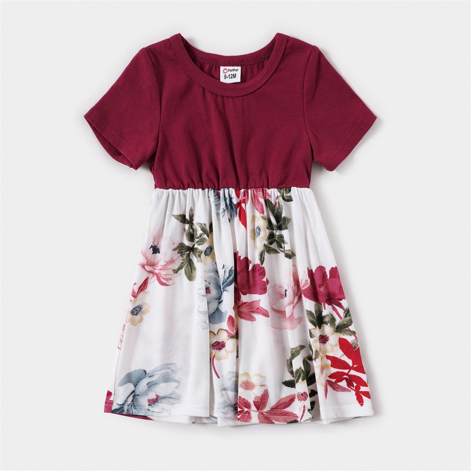 新作 PatPat ファミリー マッチング 無地 半袖 スプライシング 花柄 ドレスとカラーブロック Tシャツ セット
