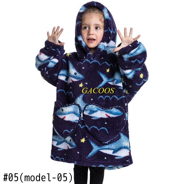 新作 子供服特大パーカーブランケット付きスリーブボーイズガールズスウェットシャツ冬フリースフード付きポケットフード付きスウェット