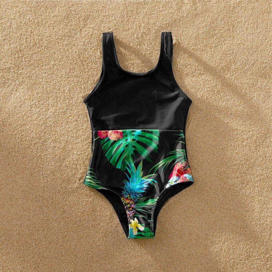 新作 PatPat 2021年夏 パイナップルプリント ステッチ お揃い水着 ファミリールック 子供用