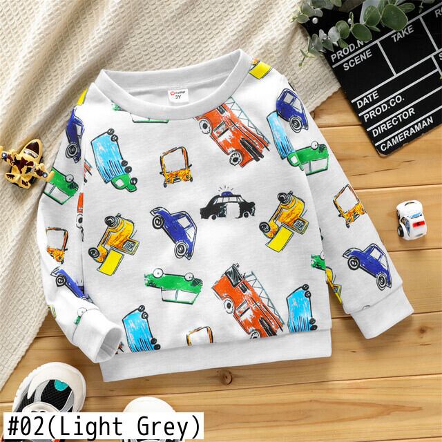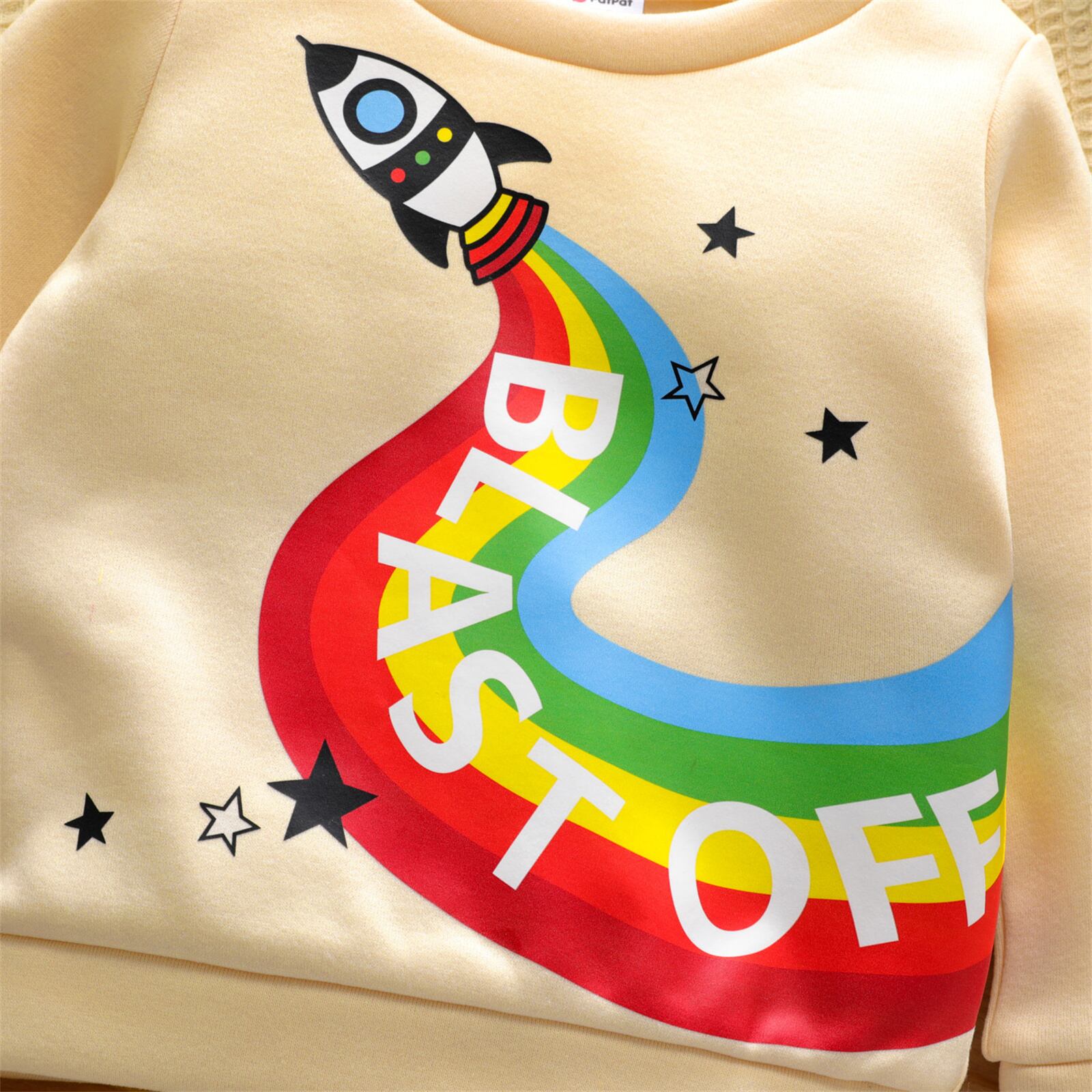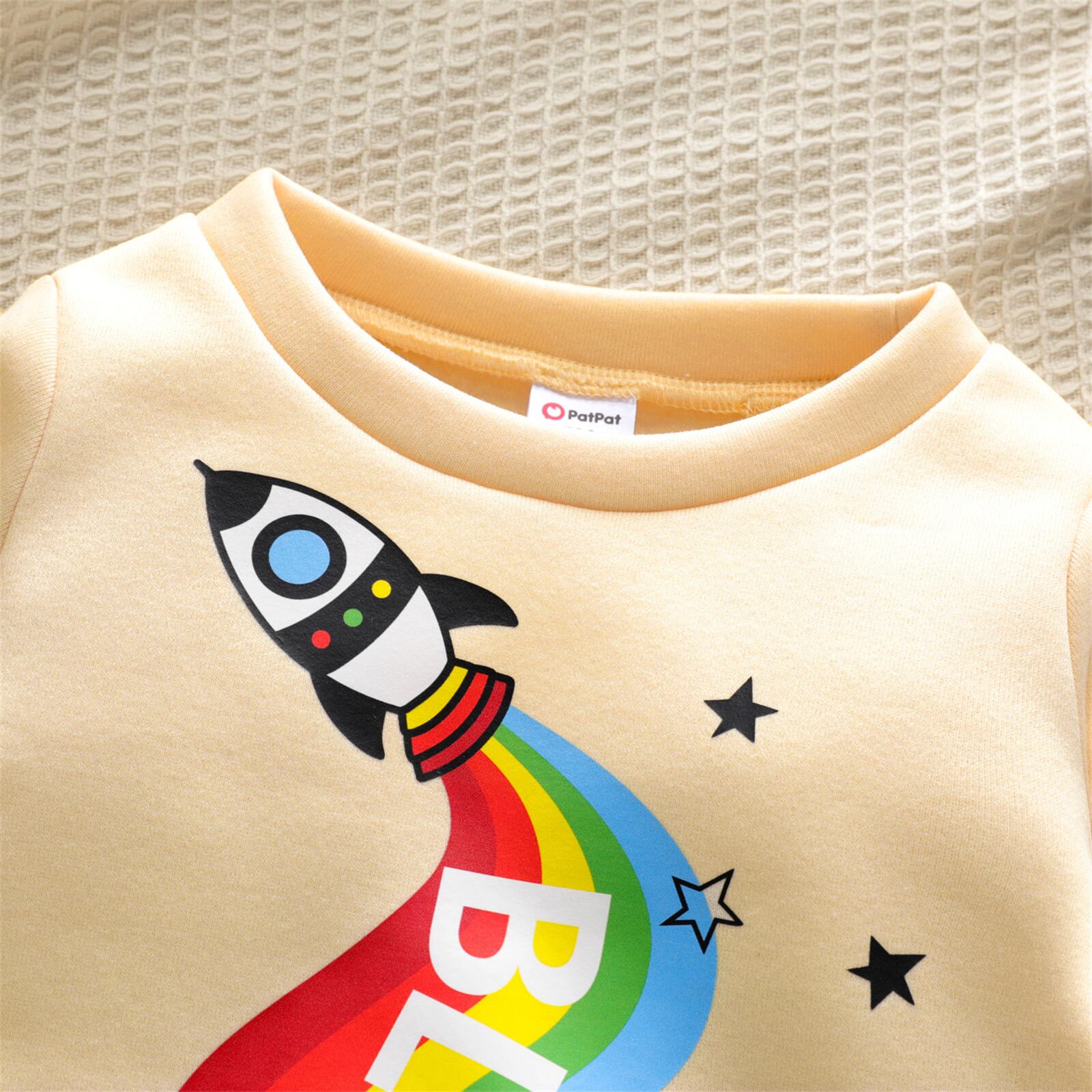 新作 PatPat 幼児 男の子 ロケット レター レインボー/ビークル プリント プルオーバー スウェットシャツ