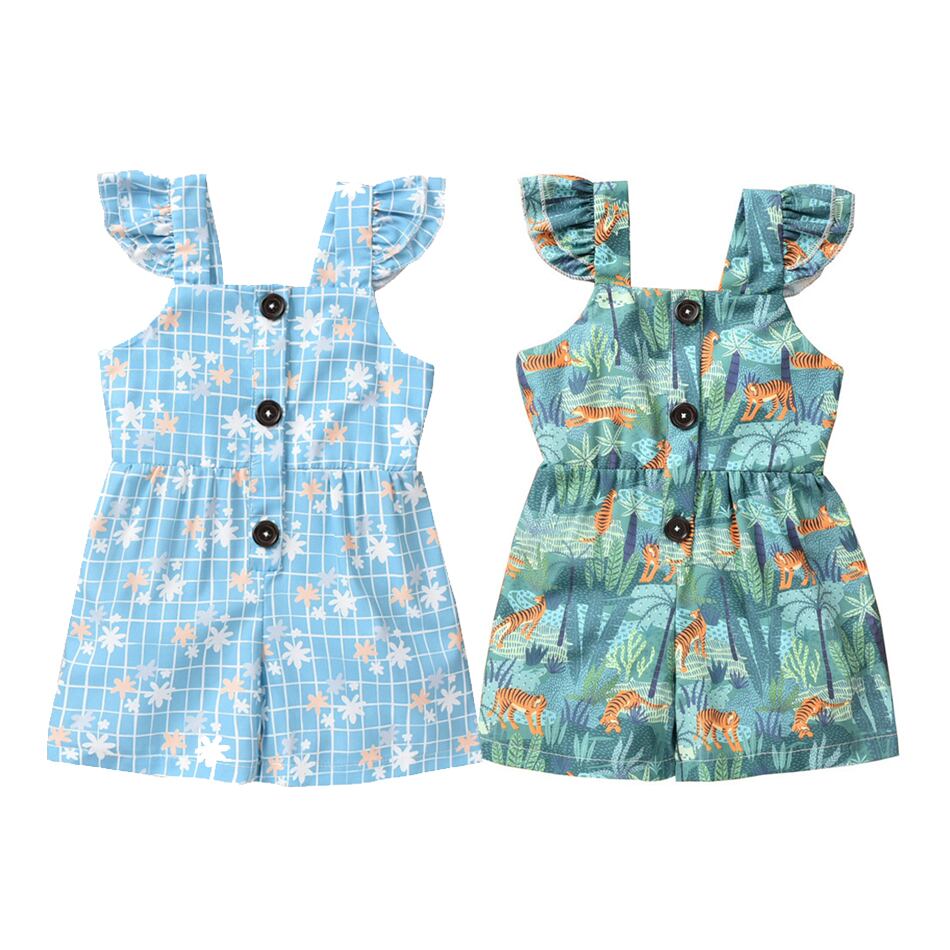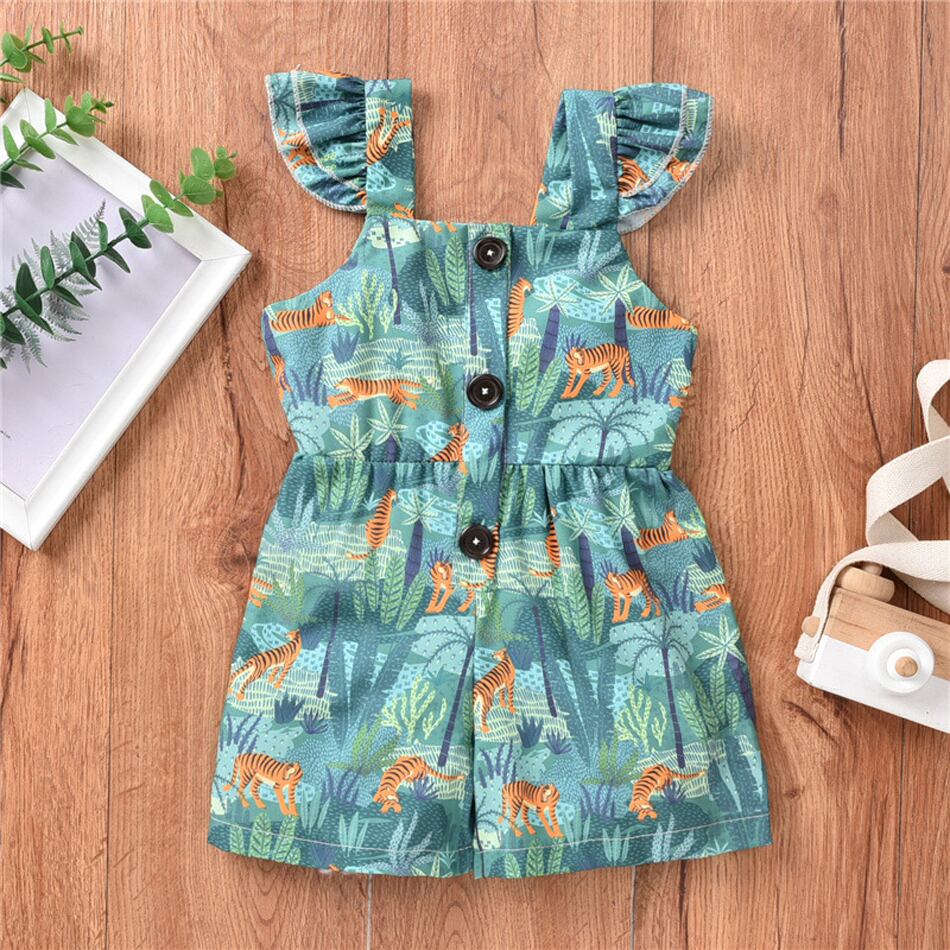 新作 キッズベビーガールインジャンプスーツ花緑の葉ロンパースボディスーツサンスーツ夏服衣装 0-2Y