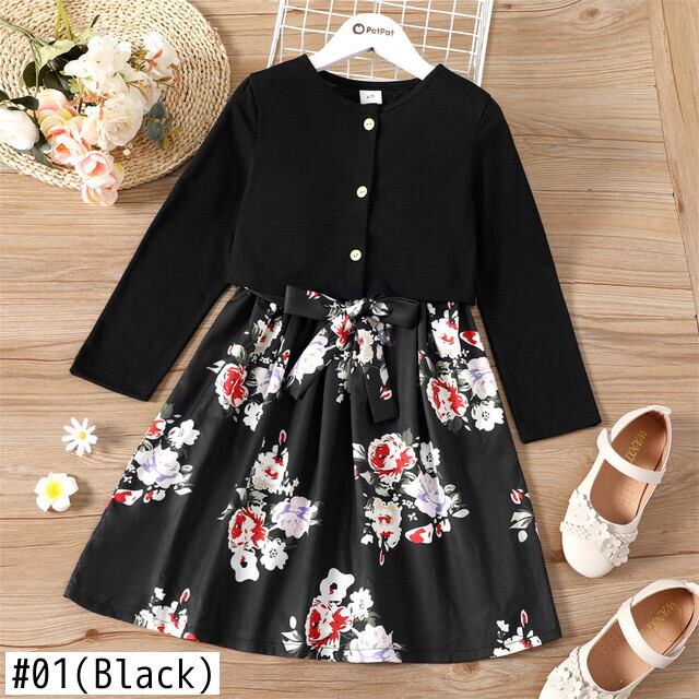 新作 PatPat Kid Girl ユニコーン プリント スプライス カラーブロック ベルト付き 長袖ドレス