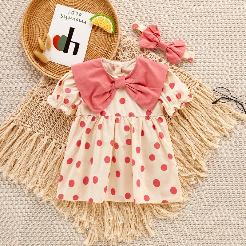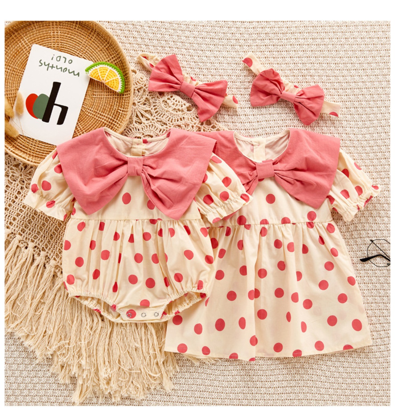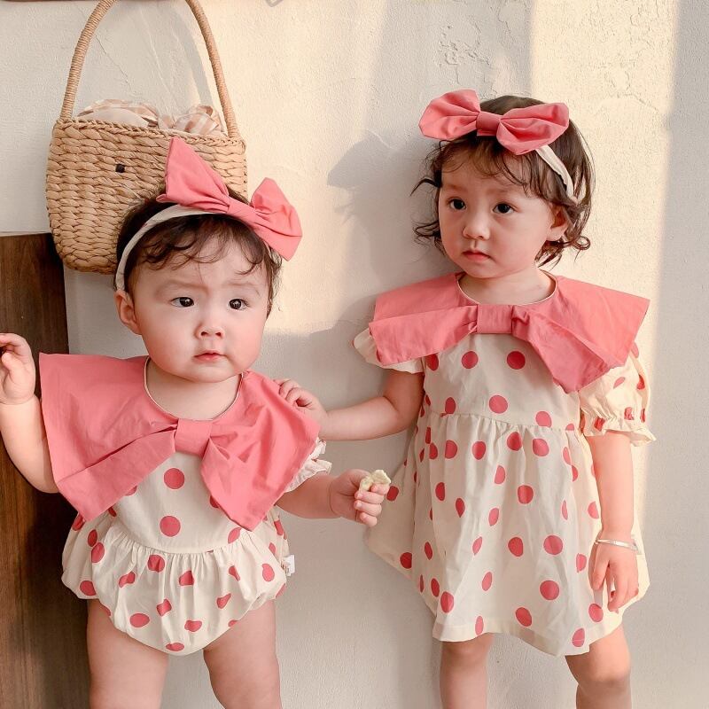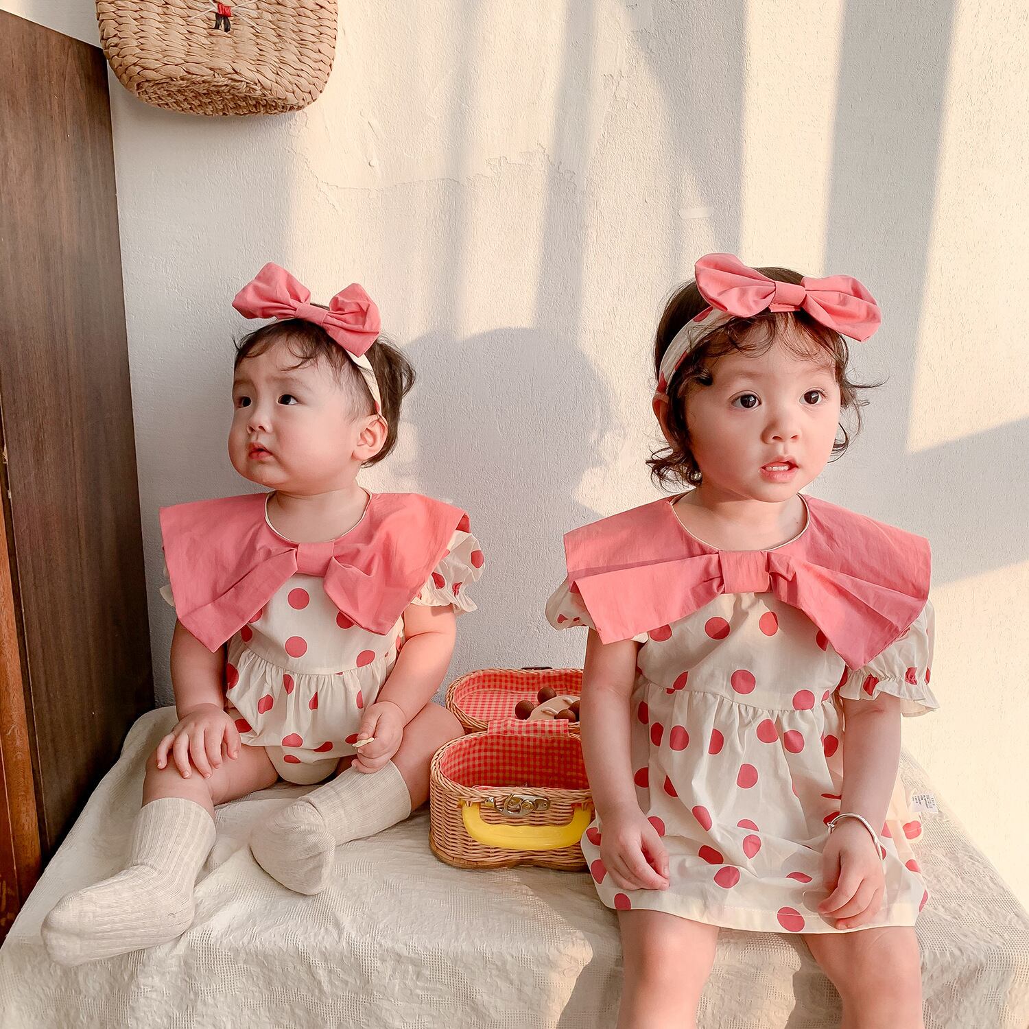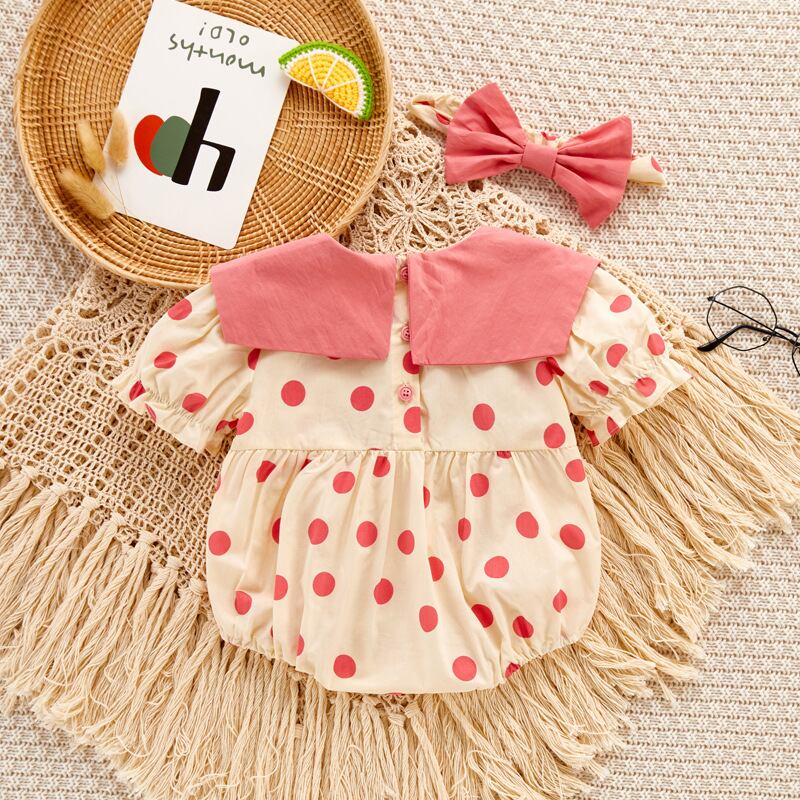 新作 夏のベビー幼児女の子ドレスポルカドットボーンロンパースジャンプスーツ幼児生まれのキャミソールボウノットボディスーツ