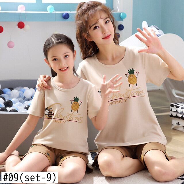 新作 母 & 子供パジャマかわいい漫画パジャマセット半袖ショーツナイトウェアファミリールック母娘ホームウェア女の子衣装