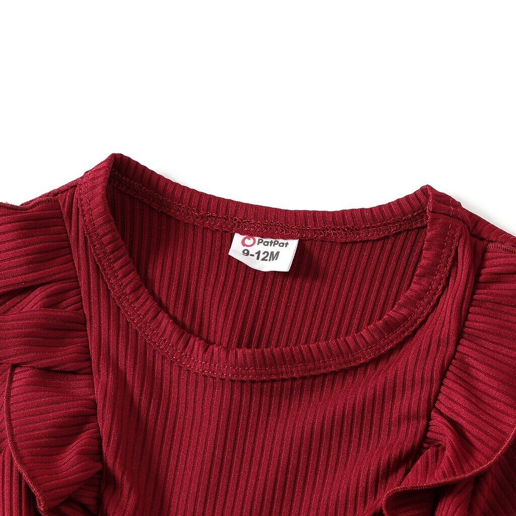 新作 PatPat 家族おそろい ワインレッド Vネック 長袖ワンピースとラグランスリーブTシャツ セット