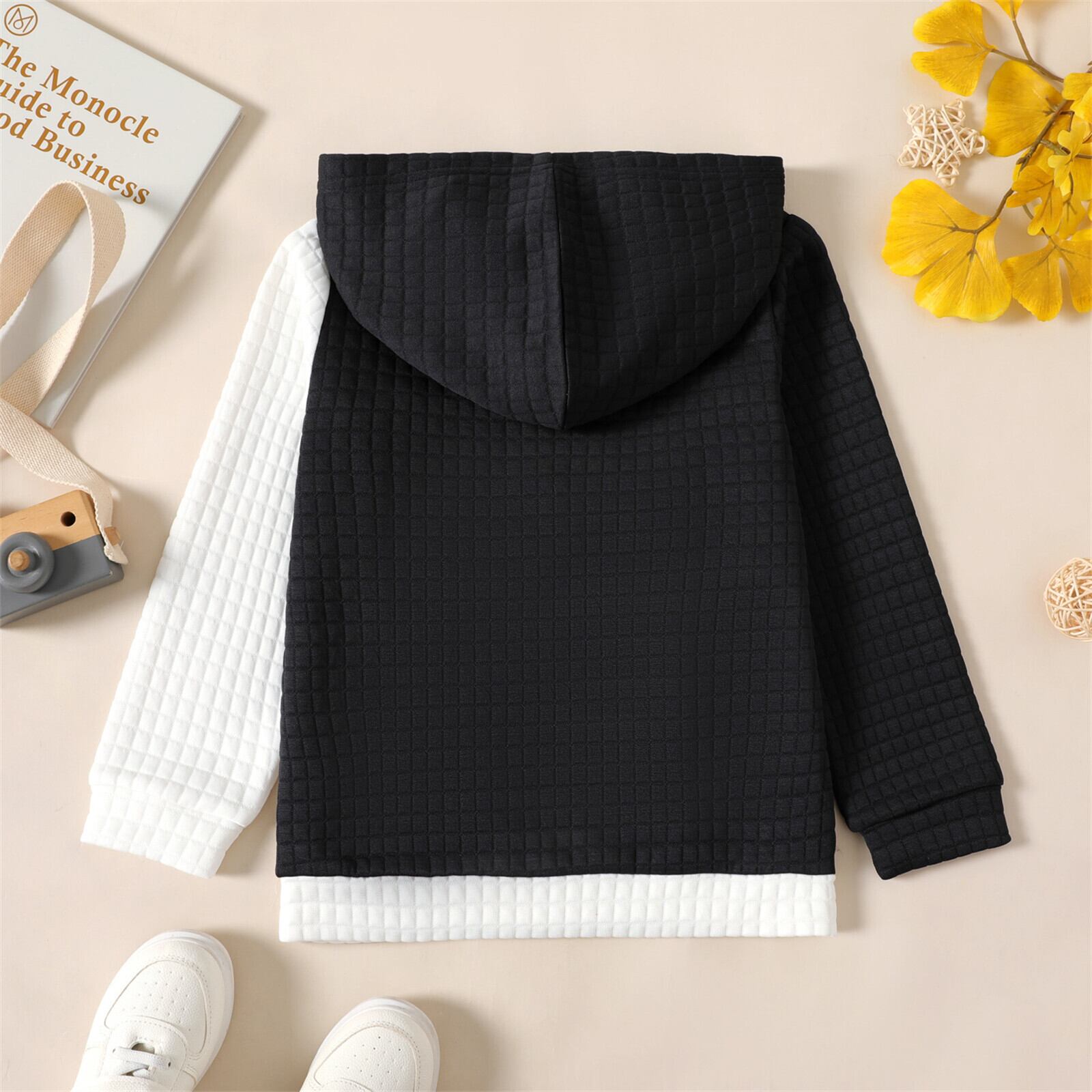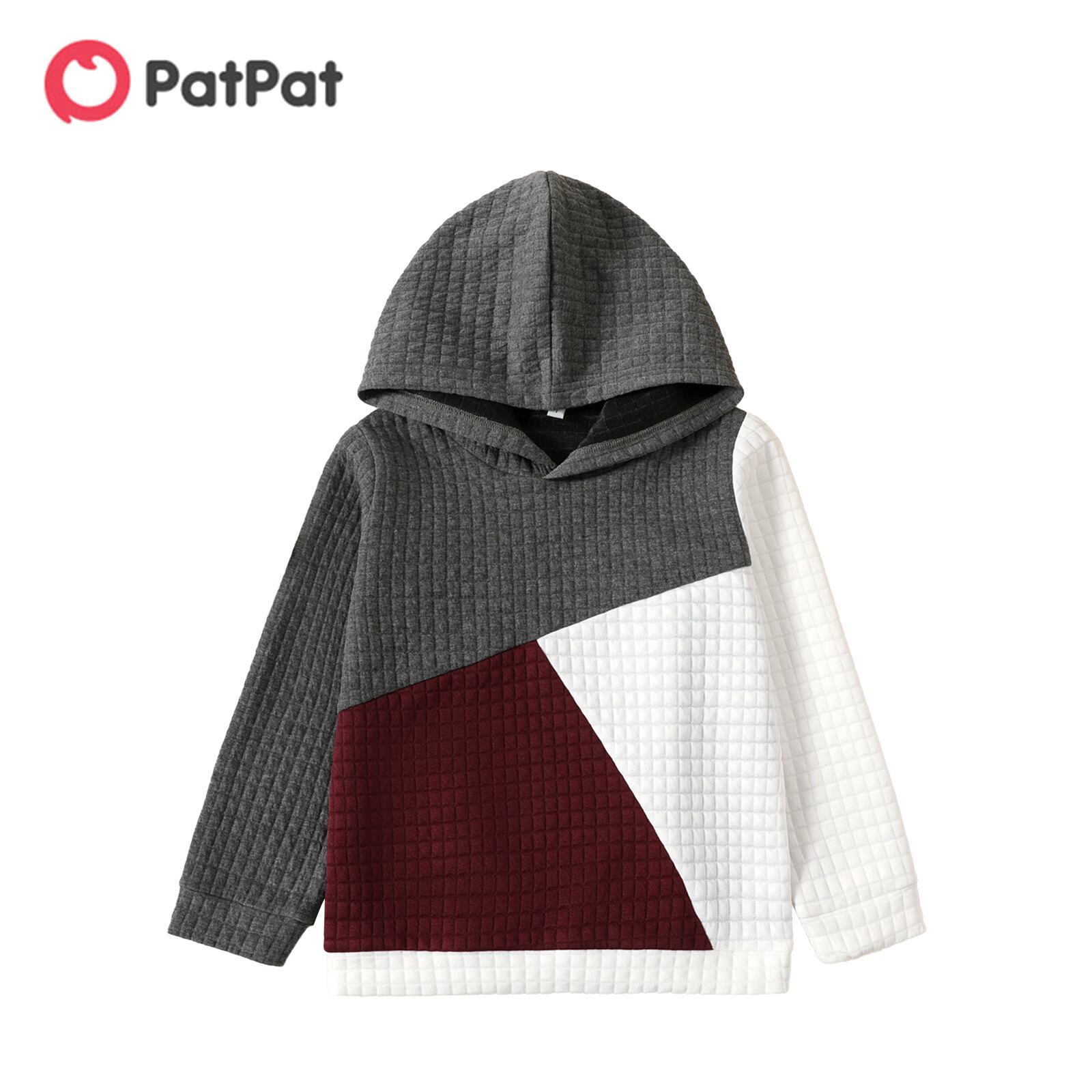 新作 PatPat キッズ ボーイズ テクスチャード カラーブロック パーカー スウェットシャツ