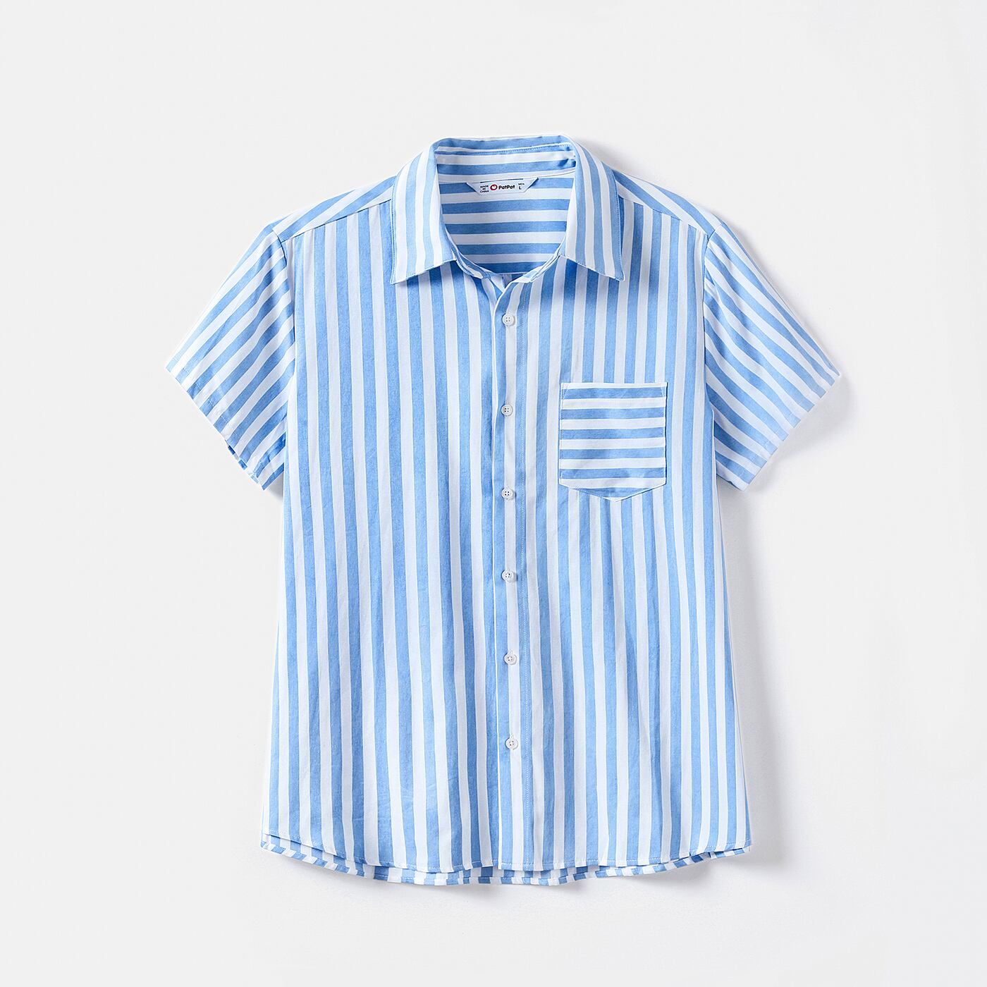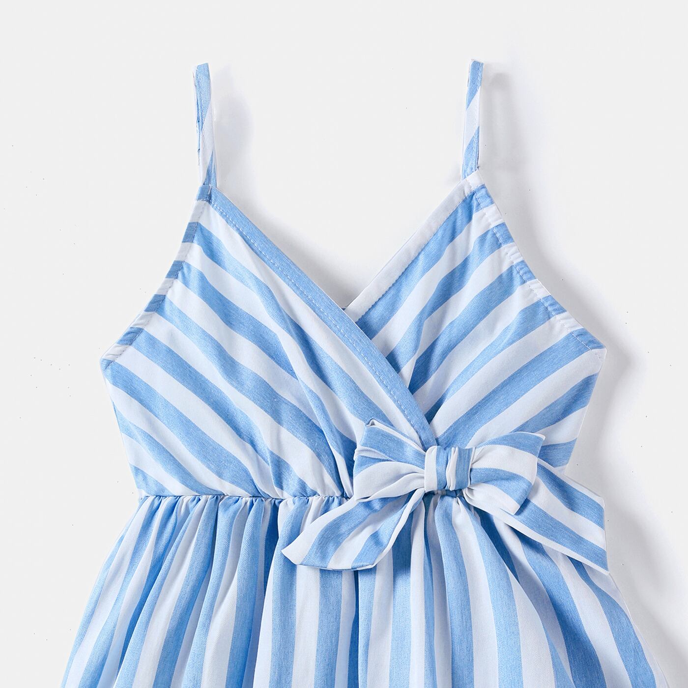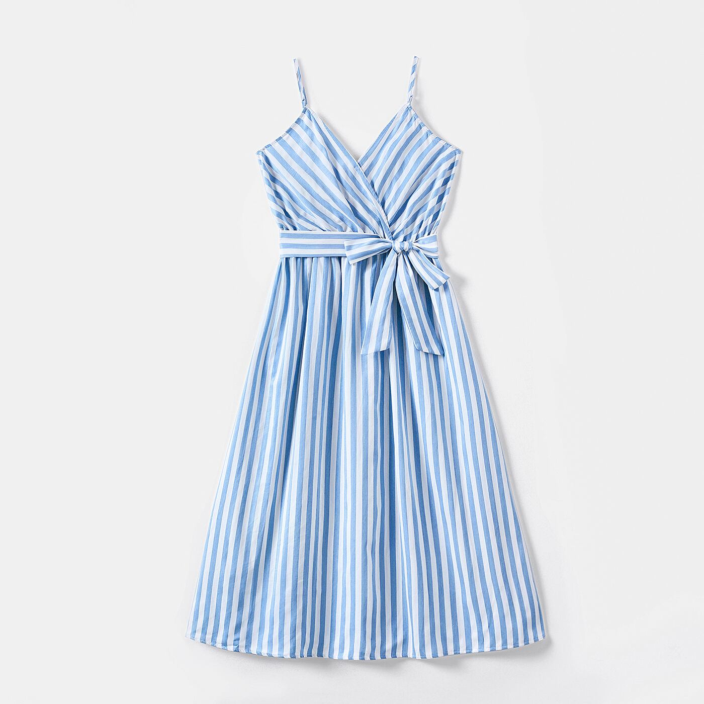 新作 PatPat サマーモザイク ファミリーマッチング 青と白のストライプセット ファミリールックドレス