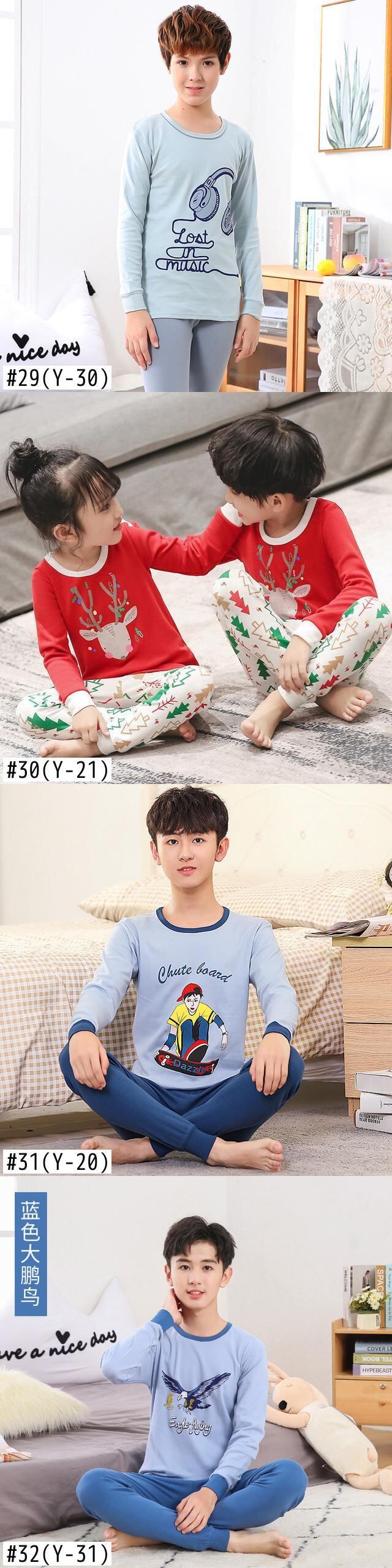 新作 9-19Y パジャマガールズボーイズかわいい漫画パジャマ冬綿のスパースター 2 個フルスリーブビッグボーイズガールズ服セット十代のパジャマ