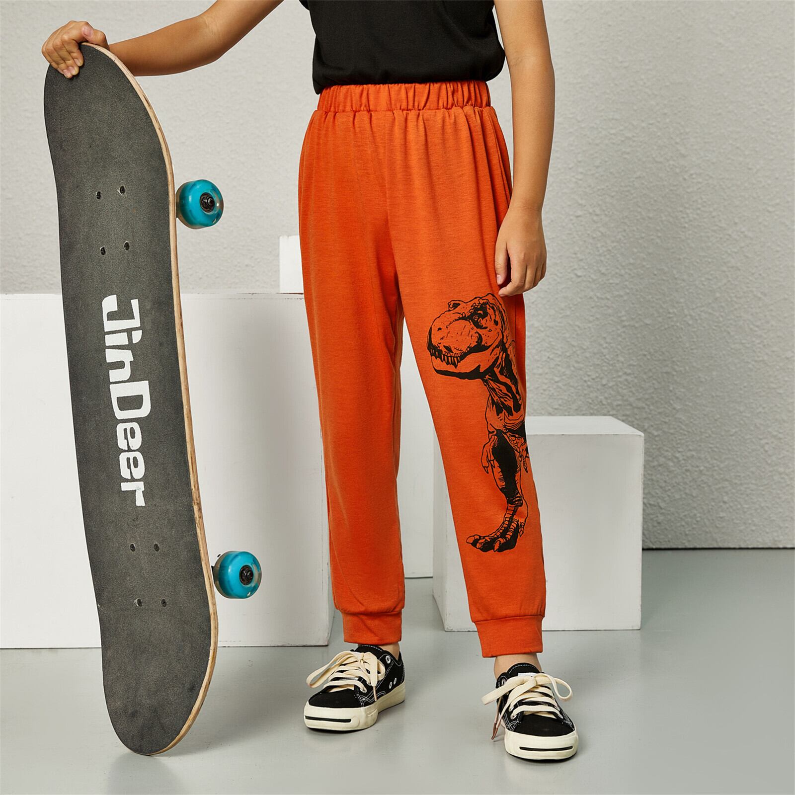 新作 PatPat キッズ ボーイズ アニマル 恐竜 プリント 伸縮性パンツ スポーティー スウェットパンツ