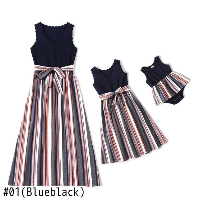 新作 PatPat 無地とストライプのスプライシング V ネック タンク ドレス ママと私