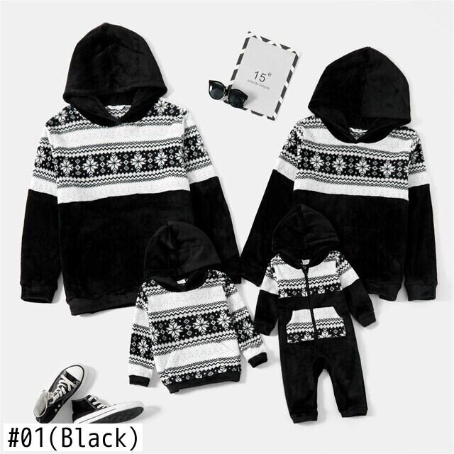 新作 PatPat クリスマス スノーフレーク プリント スプライシング ブラック ファミリー マッチング フリース 長袖 パーカー