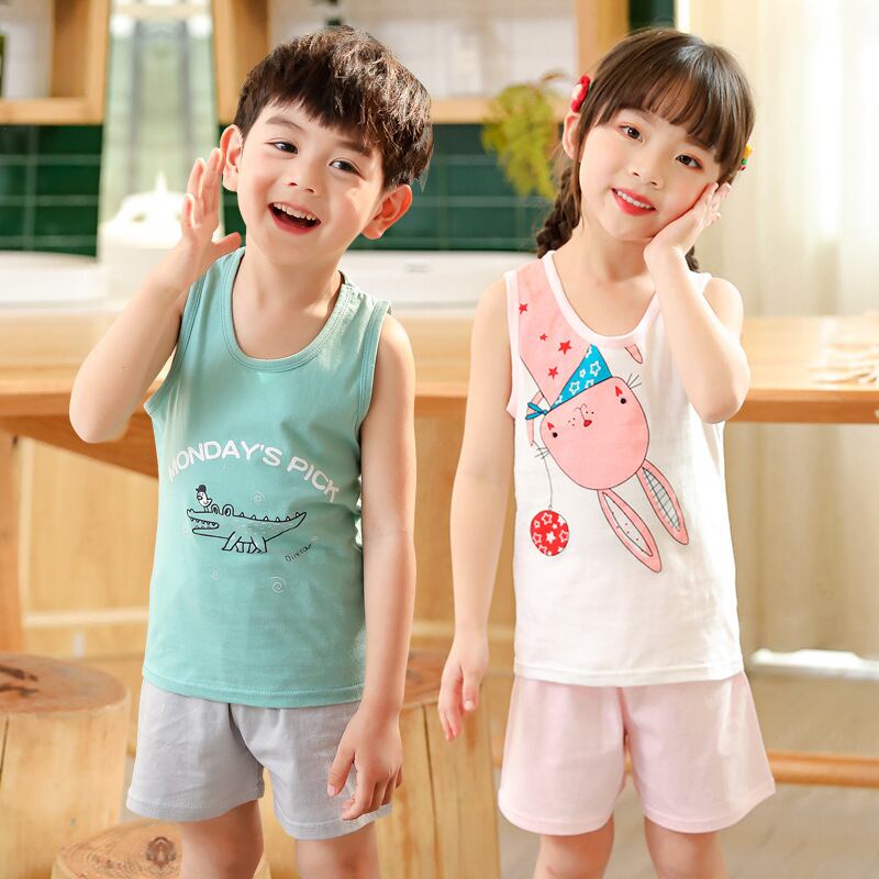 新作 男の子女の子服子供のセット綿のベストパンツ 2 枚セット子供の漫画の女の赤ちゃん衣装ホリデー服