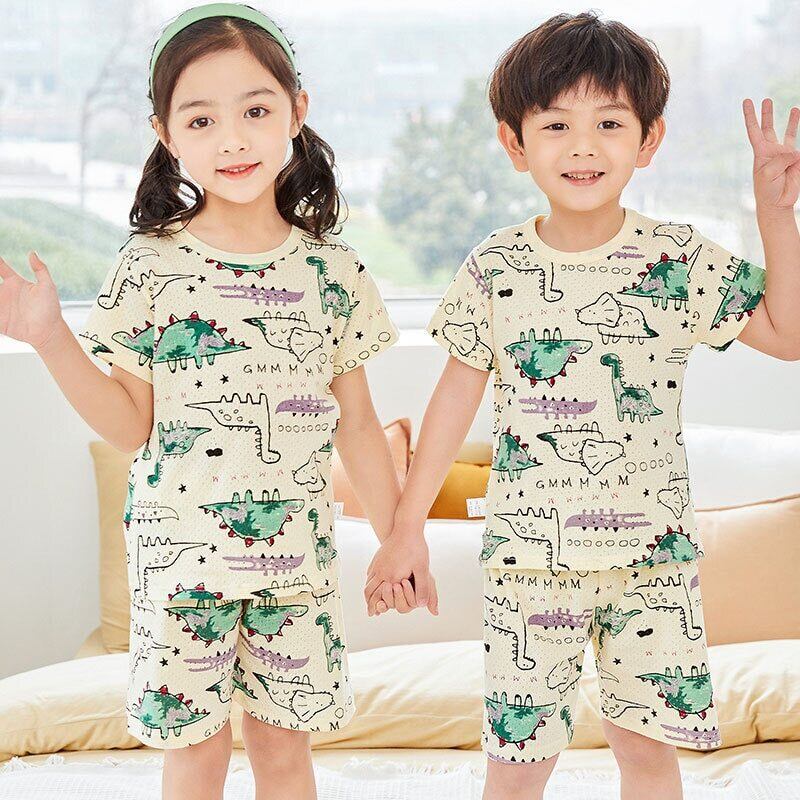 新作 夏の子供服 Tシャツ + ショーツ 2 ピース/セット漫画パジャマガールズボーイズセットメッシュ呼吸スポーツスーツ