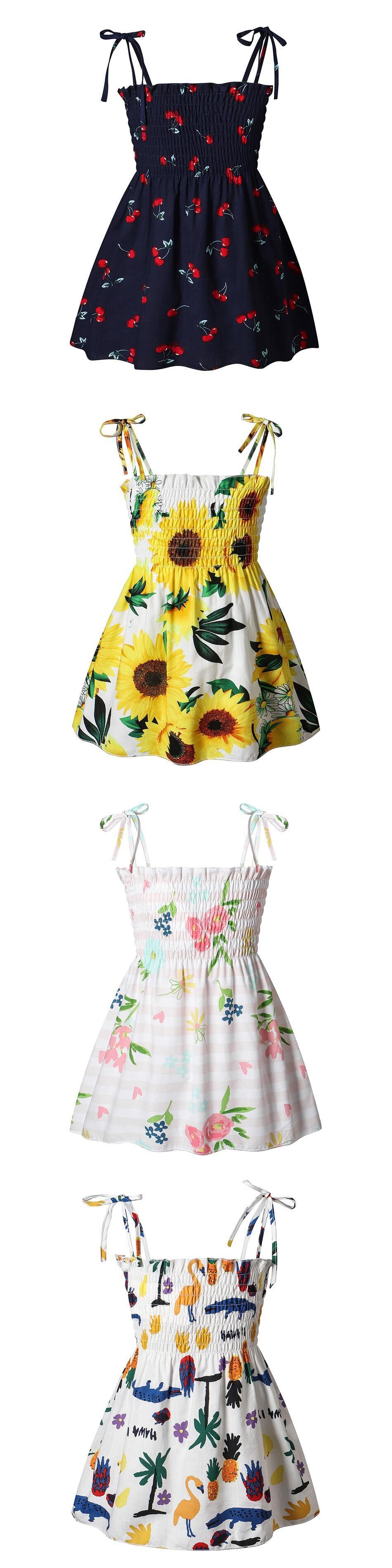 新作 Muababy ボヘミアン ガール サマー ベビー ビーチ ドレス 花柄 バックレス スリング服 子供ドレス 2-7T JYF