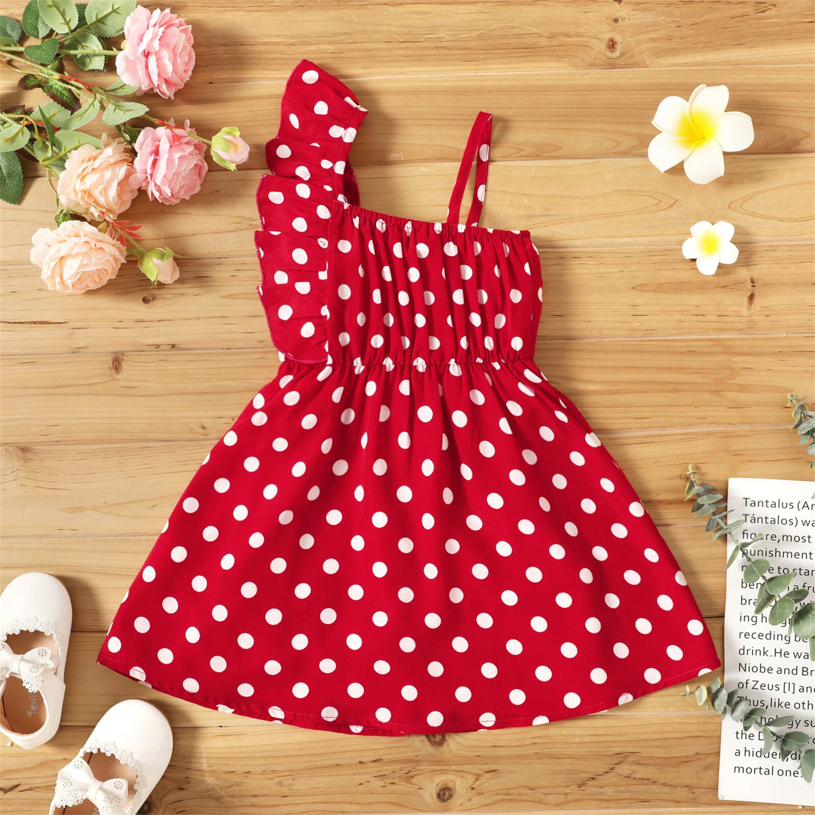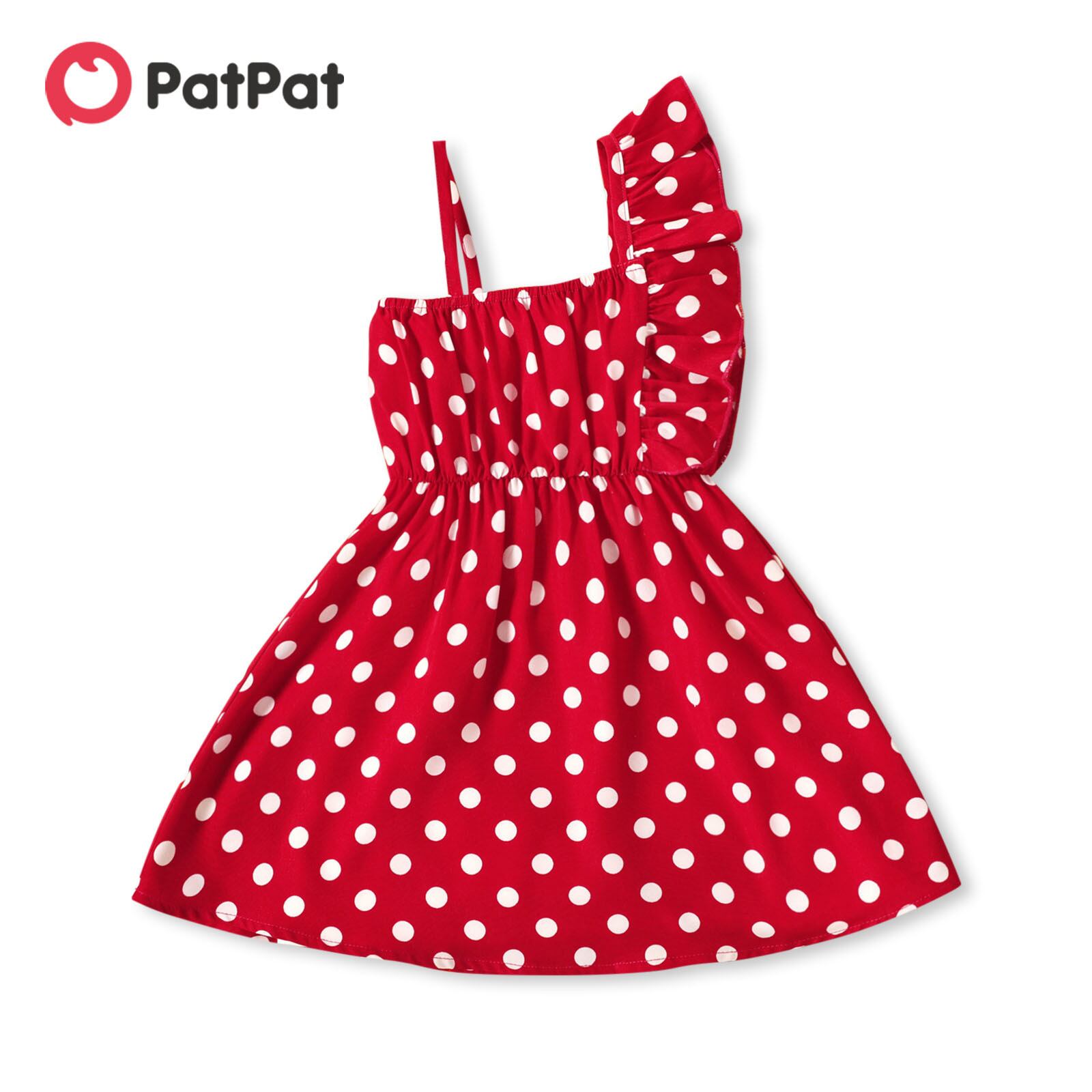 新作 PatPat 幼児 女の子 水玉 ワンショルダー フリル キャミワンピース