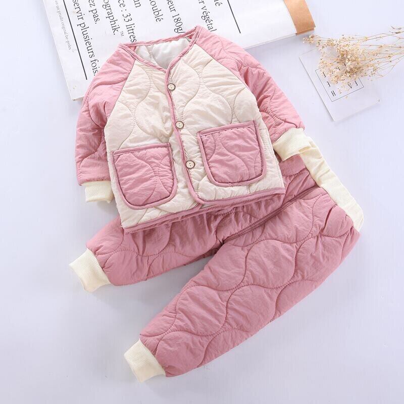 新作 PatPat 2 ピース ベビー ガール/ボーイ ボタン テクスチャード パディング コートとパンツ セット