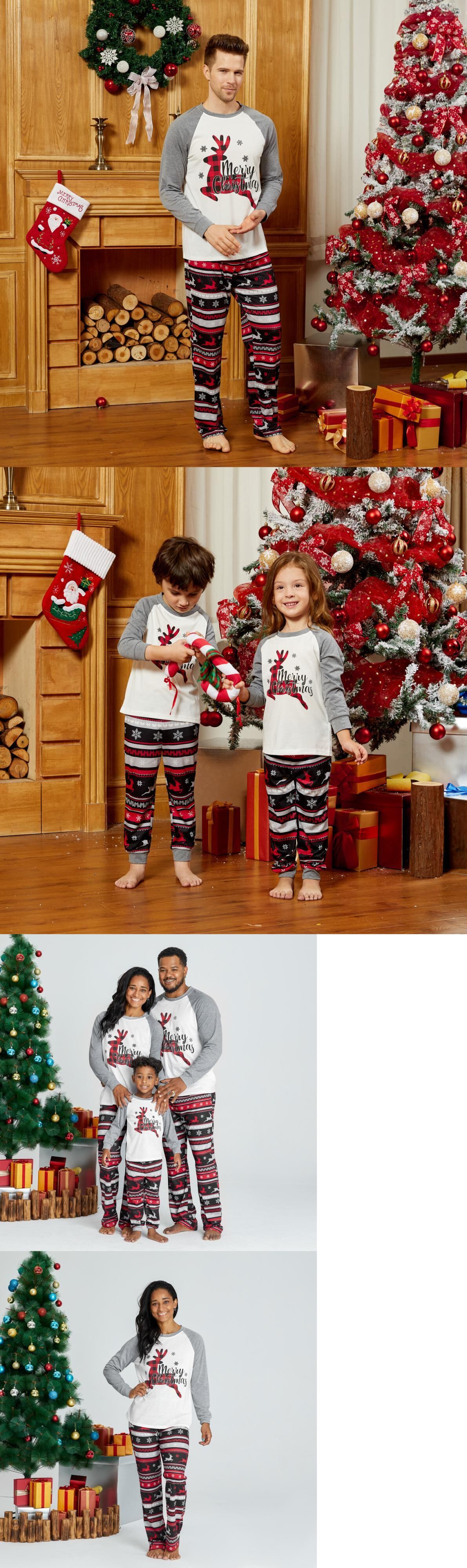 新作 PatPat 秋冬 メリークリスマス チェック柄 トナカイ プリント 家族おそろいパジャマセット (防炎) セット