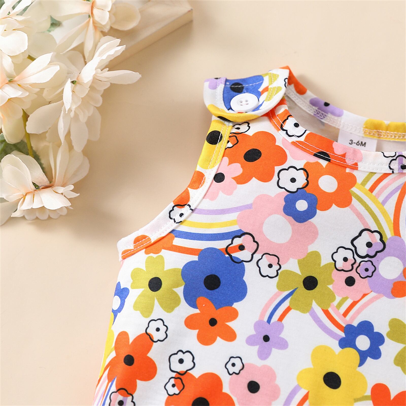 新作 PatPat ベビー 男の子 全体にカラフルな花柄 ノースリーブ ジャンプスーツ