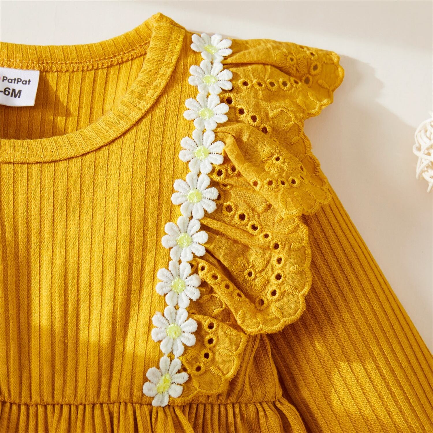 新作 PatPat ベビー 女の子 デイジー 刺繍 フリル 長袖 ボディスーツ ロンパース