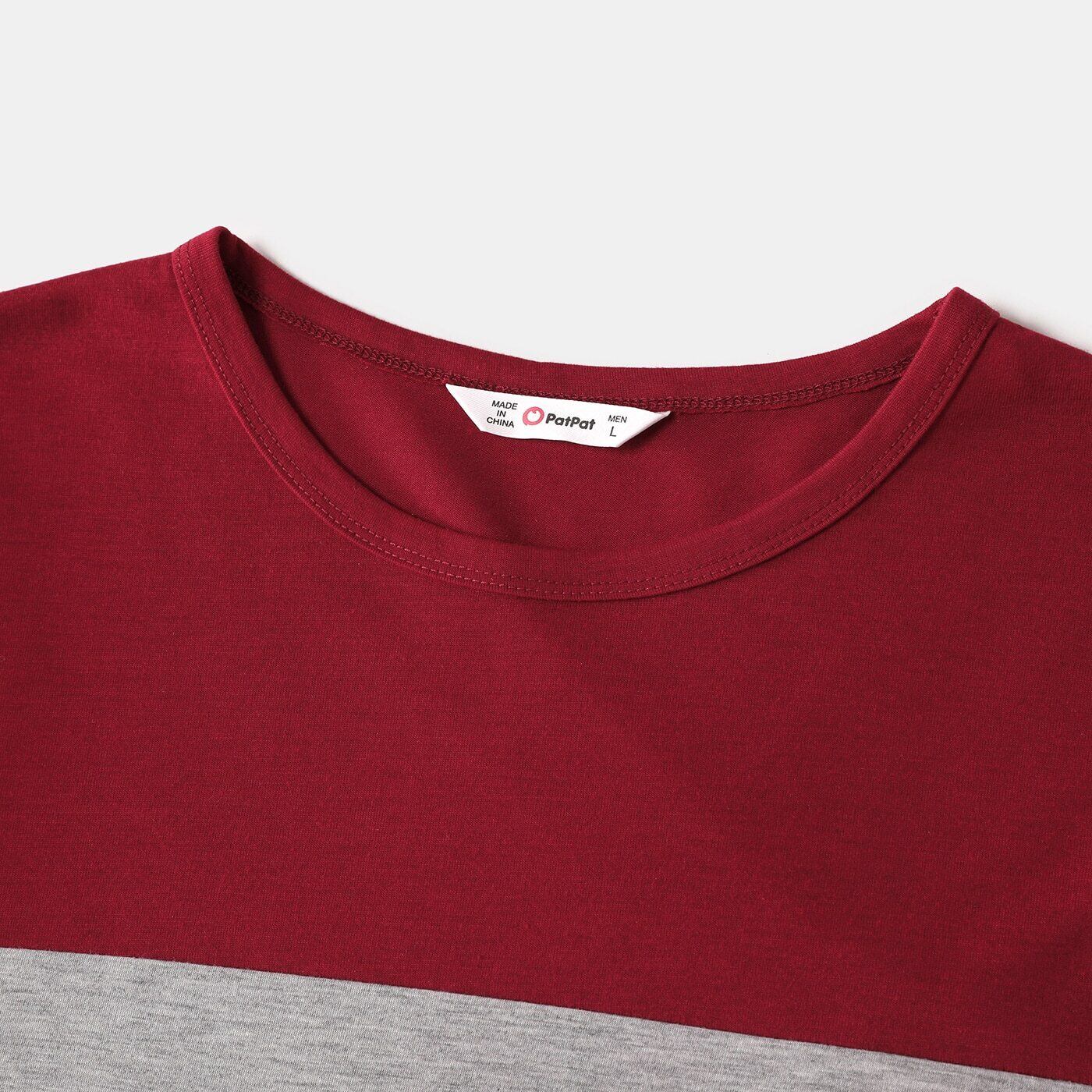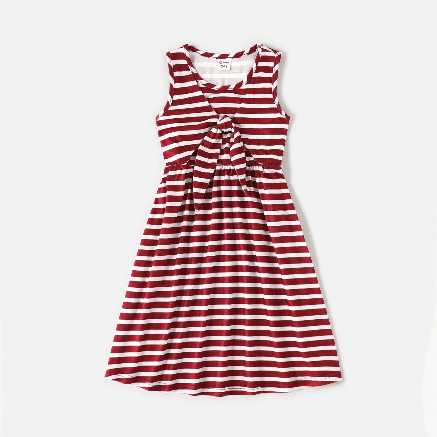 新作 PatPat ファミリー マッチング レッド ストライプ ノースリーブ ドレスとカラーブロック ショートスリーブ Tシャツ セット